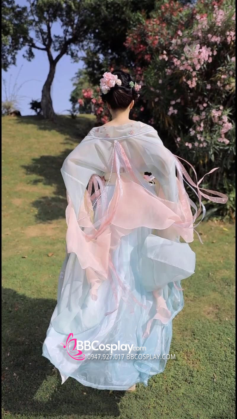 Thành phần: Yếm + áo + chân váy + phi bạch + 2 dây ngọc trai thắt lưng +2 hoa thắt lưng +2 hoa tay áo