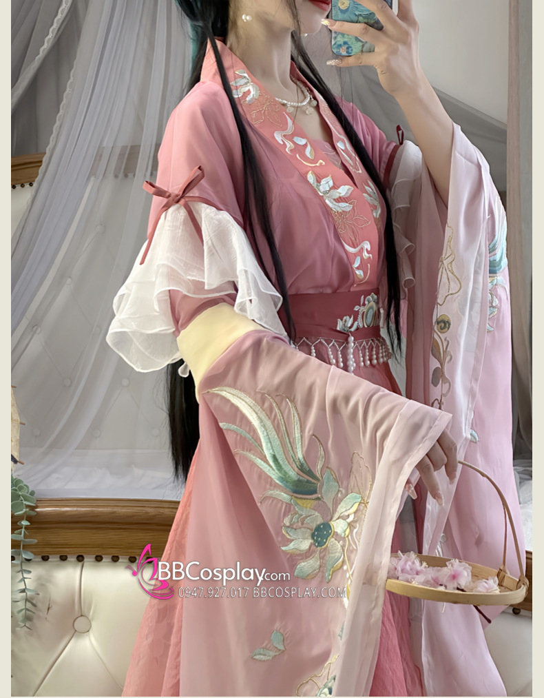 - Thành phần: áo yếm dây + áo dài tay rộng + chân váy + phi bạch + phù đai ( phụ kiện thắt lưng)