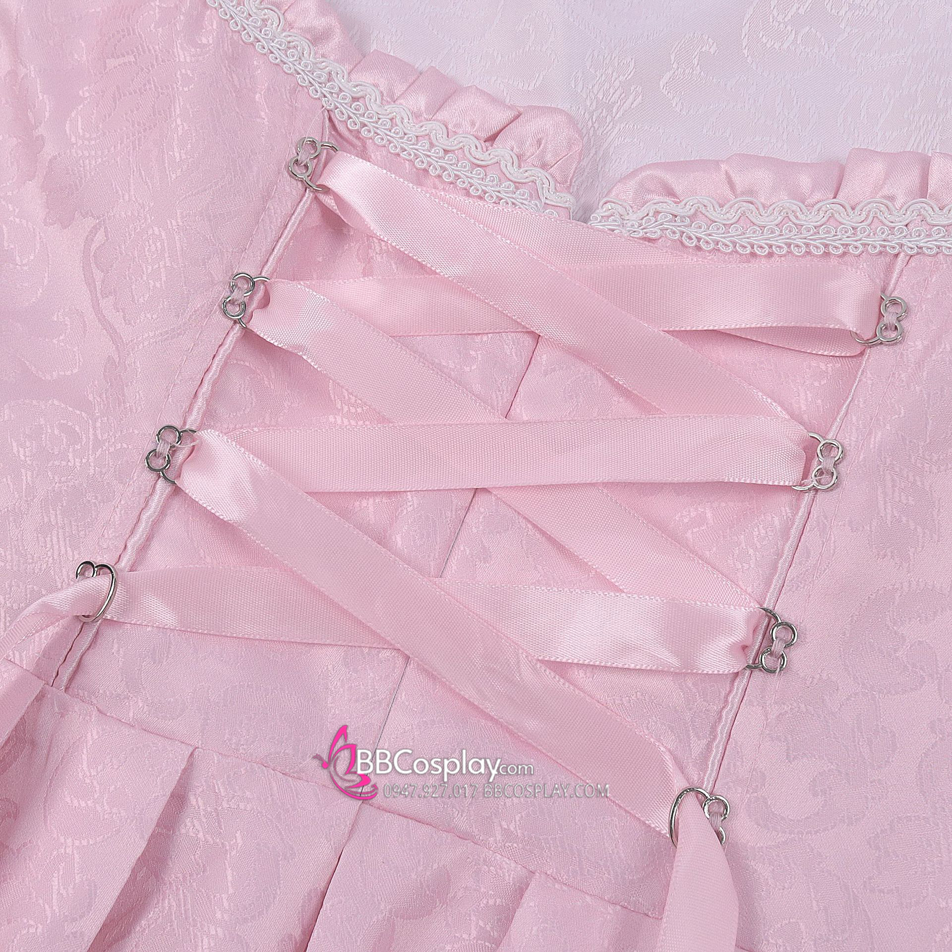 Đồ Nàng Hầu Maid Hồng Tạp Dề Trắng Kèm Nhiều Nơ