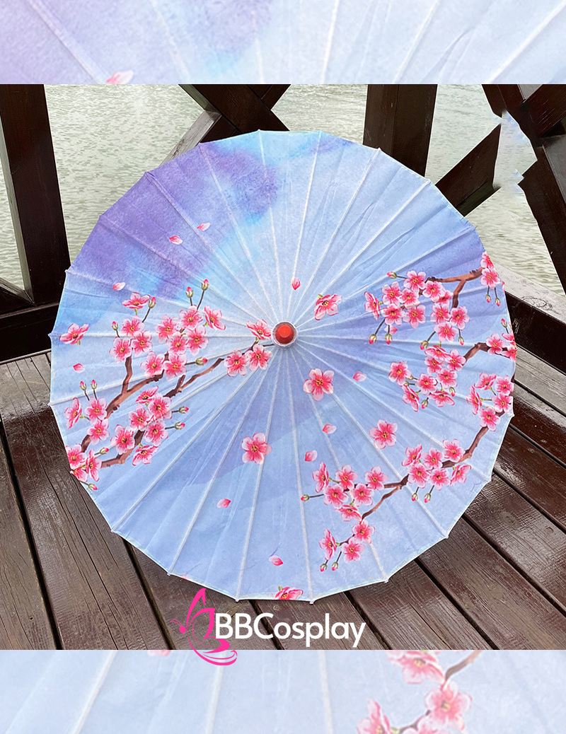 Dù Vải Cổ Phong Nền Tím Nhánh Hoa Nở