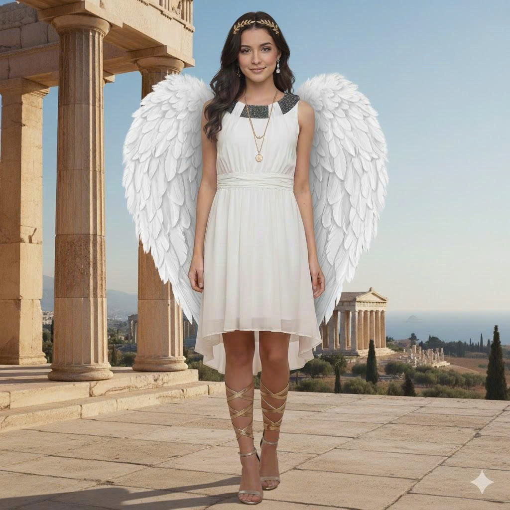 Trang Phục Thiên Thần Trắng Có Cổ Đính Đá Đen