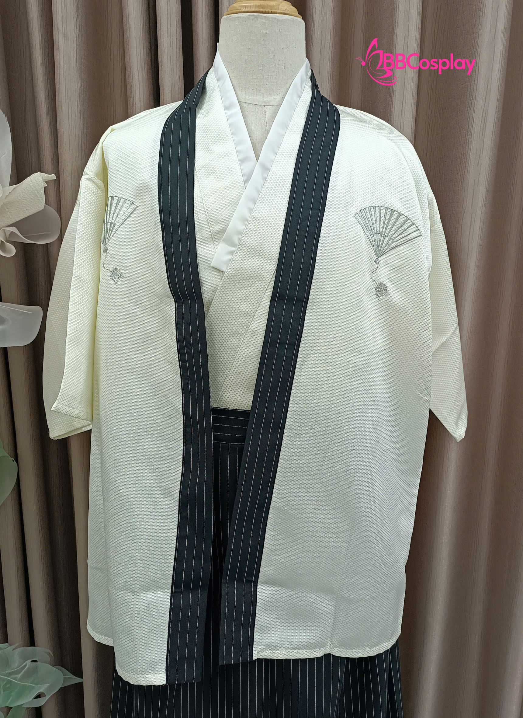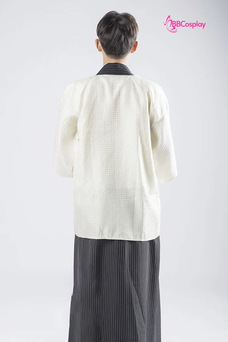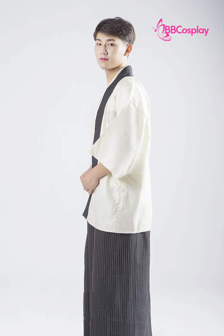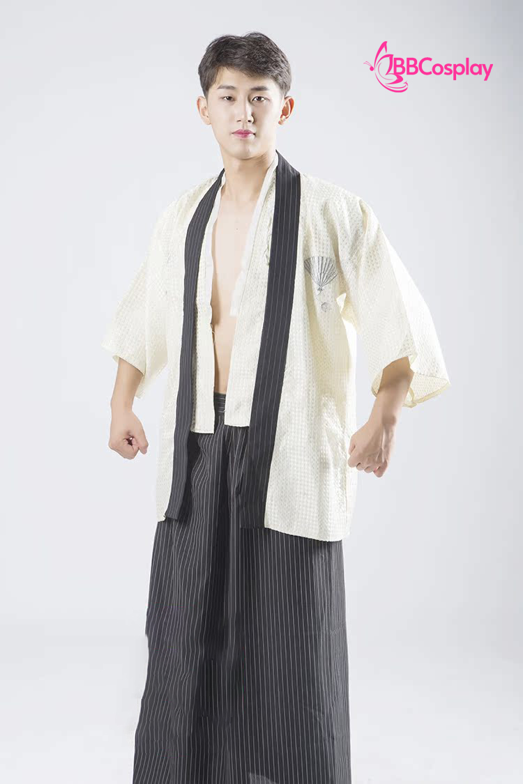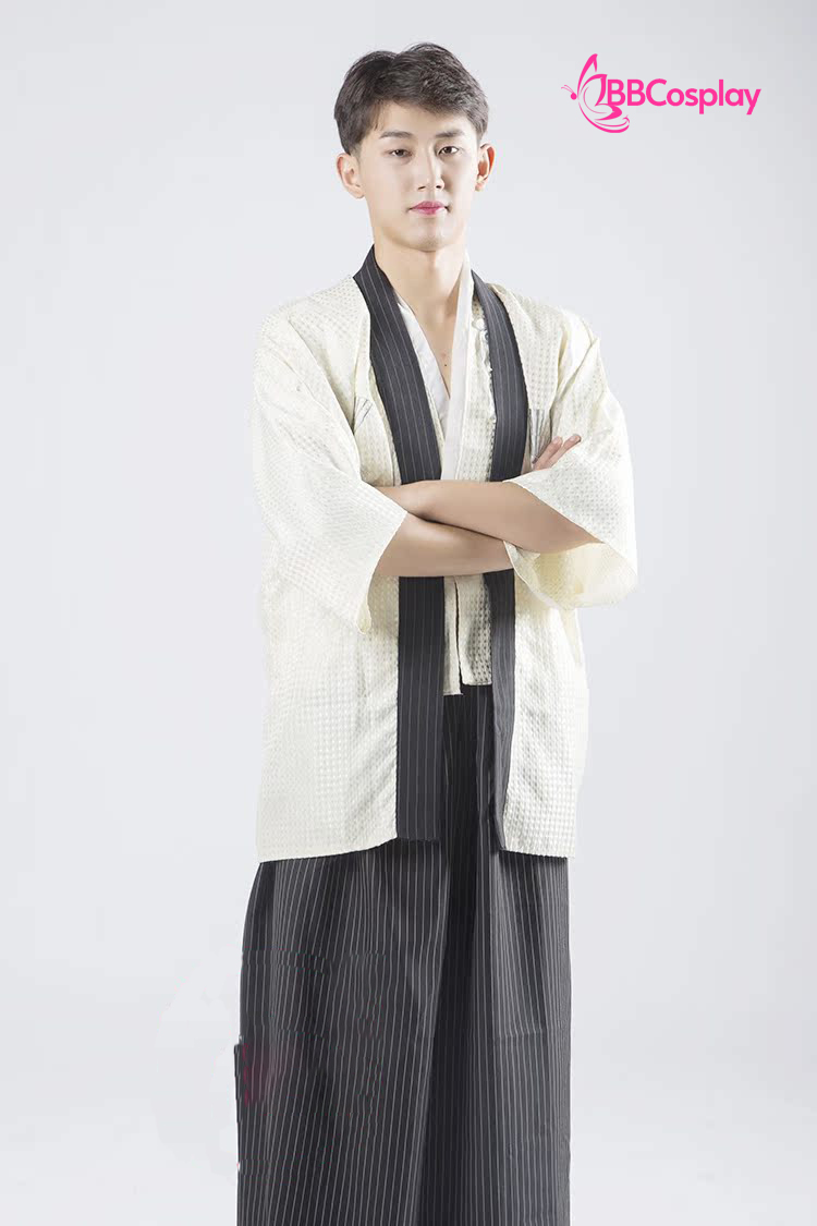 Kimono Nam Phong Cách Samurai - Áo Kem Váy Sọc