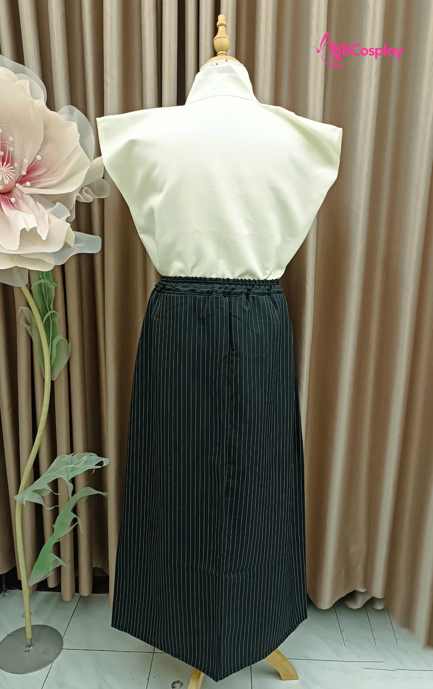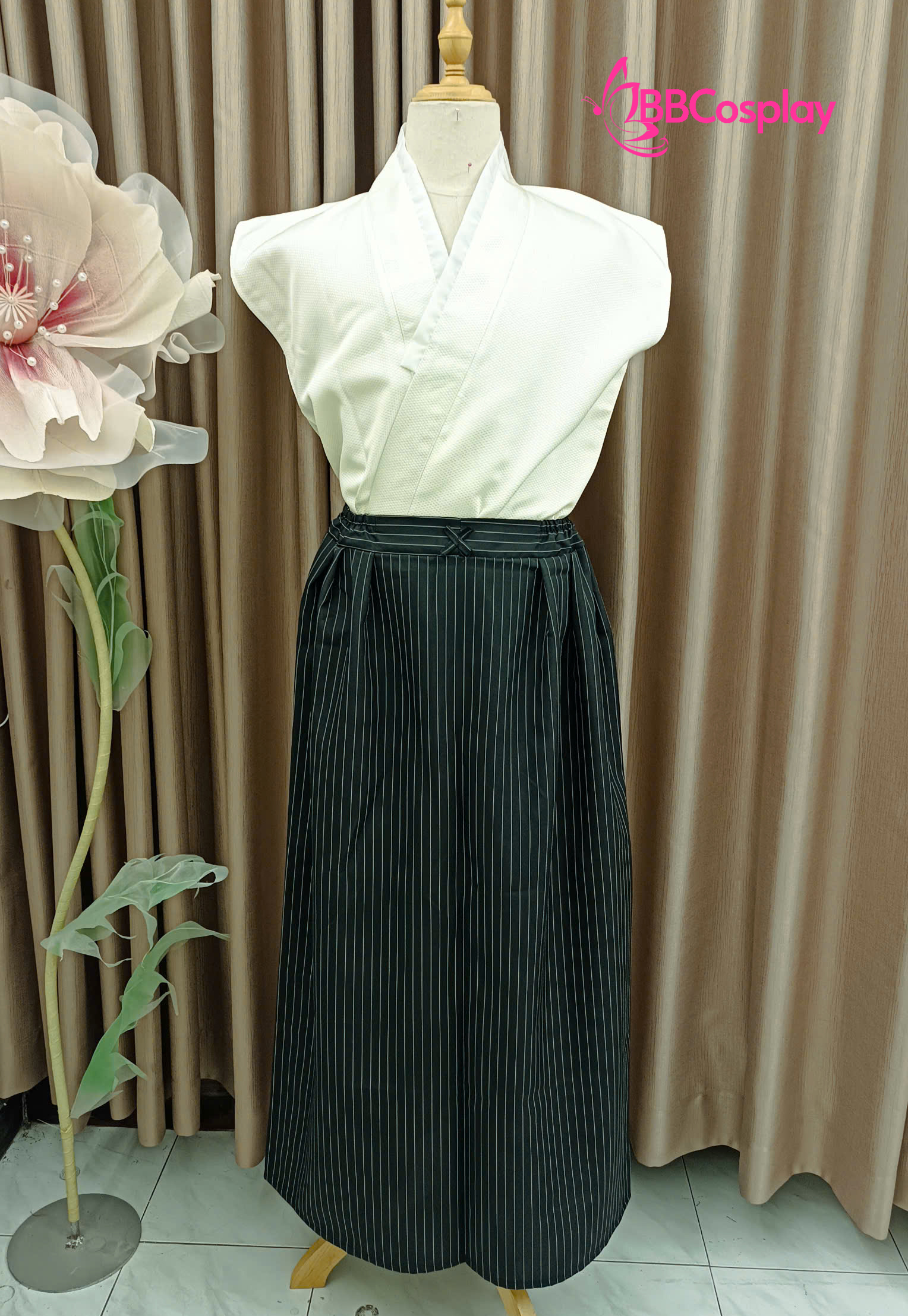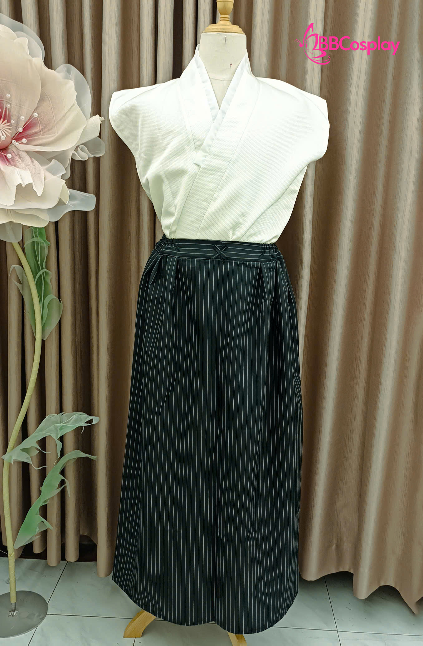 Kimono Nam Phong Cách Samurai - Áo Kem Váy Sọc
