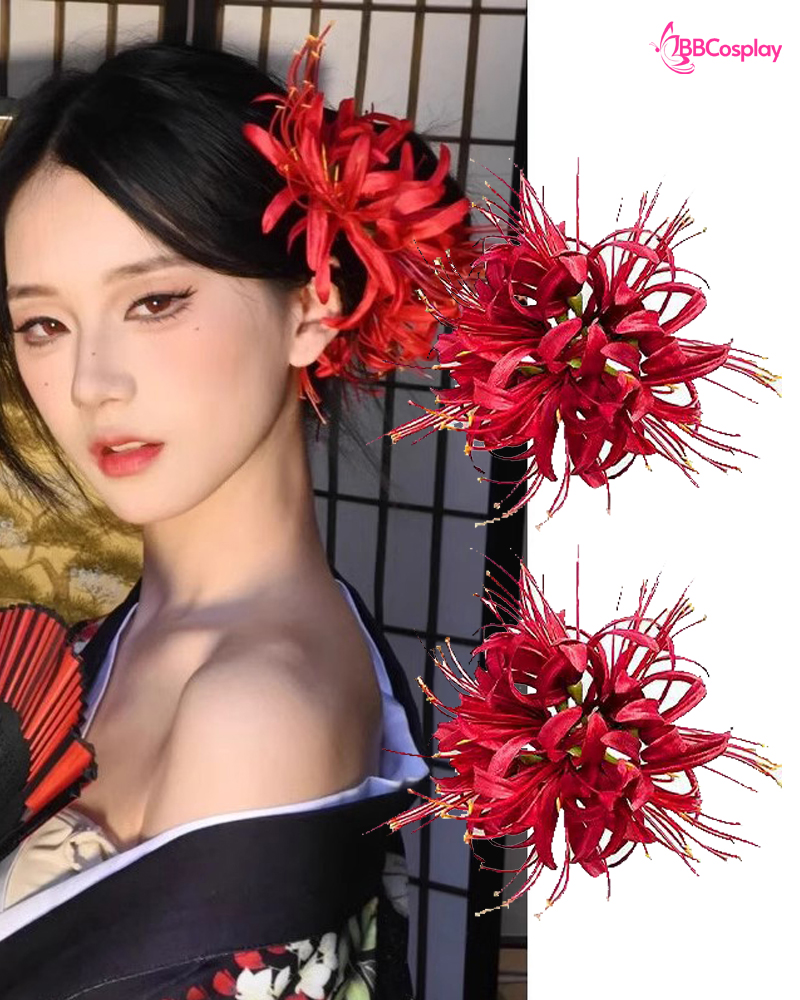 Kẹp Tóc Hoa Bỉ Ngạn Đỏ - Kẹp Tóc Chụp Ảnh