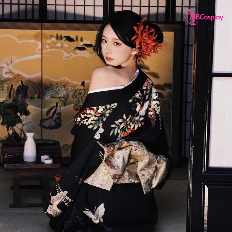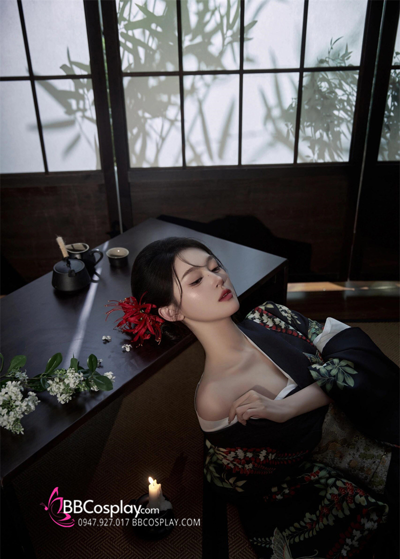 Trang Phục Nàng Hầu Nhật Đen Tạp Dề Trắng Cổ Áo Lá Sen