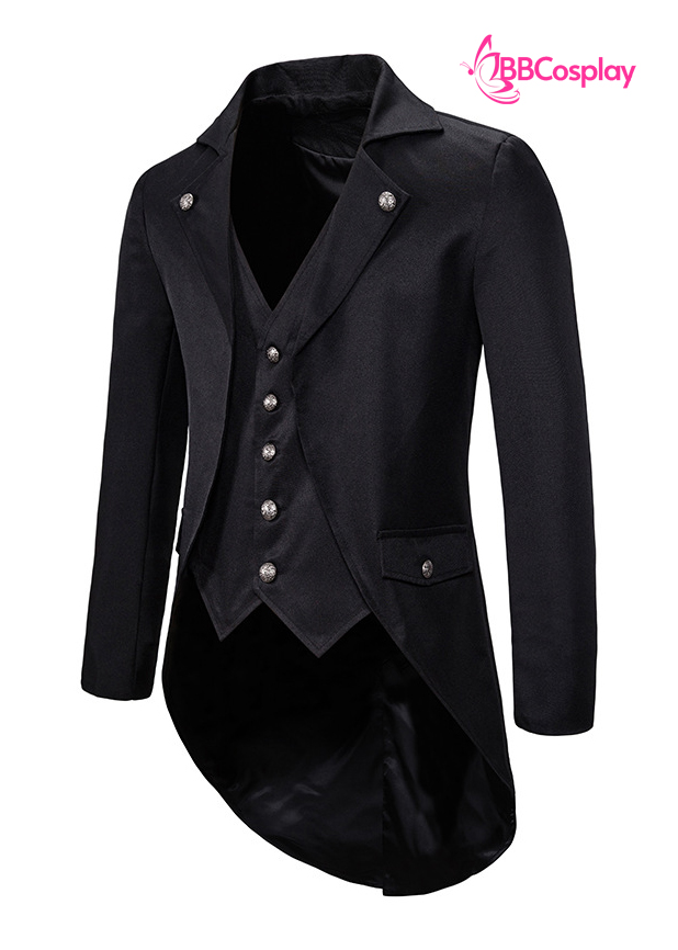 Vest Đuôi Tôm Quản Gia Đen Vải Kaki