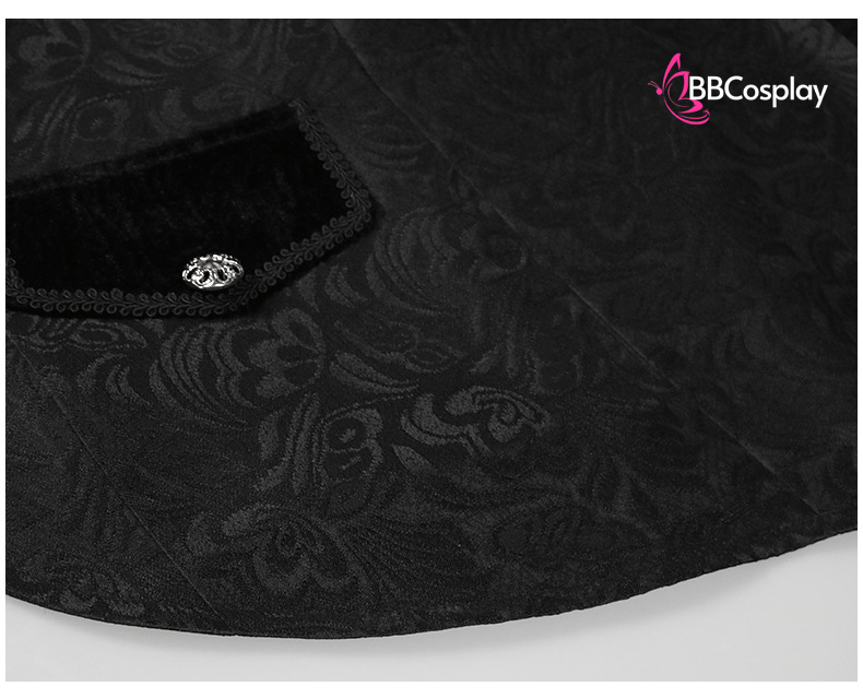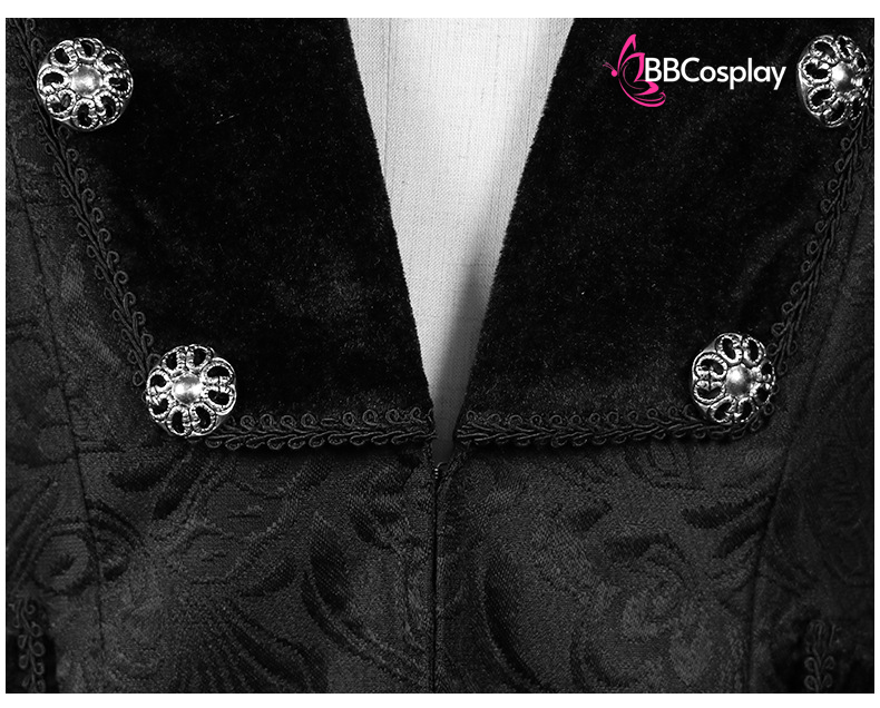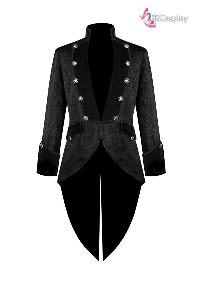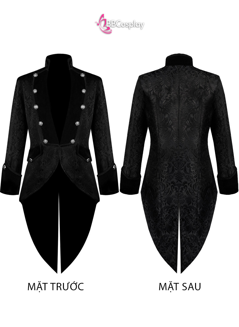 Áo Vest Châu Âu Đuôi Tôm Đen Vải Gấm Xốp Viền Cổ Nhung