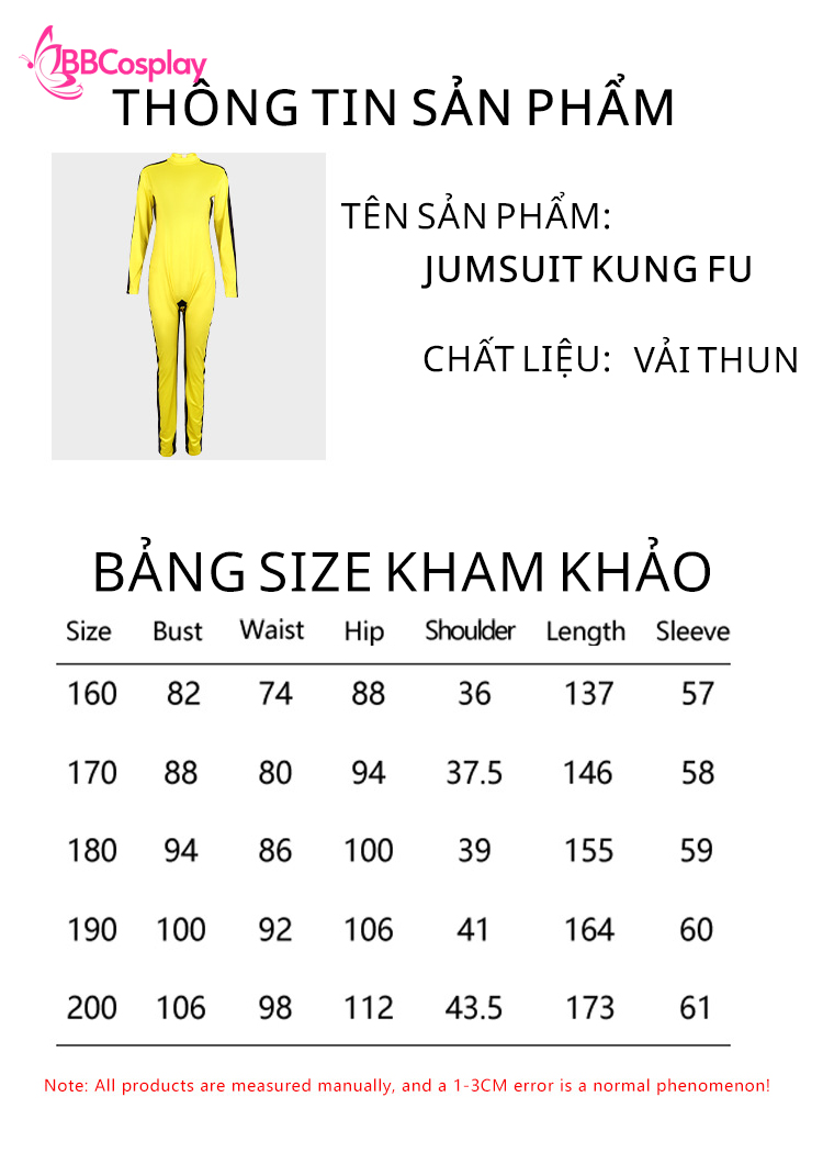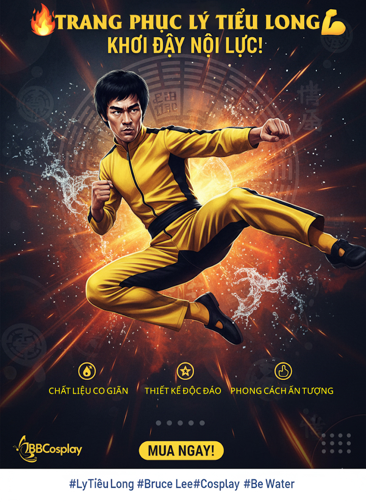 Bạn đã sẵn sàng để tái hiện phong thái đỉnh cao của huyền thoại võ thuật Lý Tiểu Long? Với bộ trang phục liền thân màu vàng đặc trưng cùng các sọc đen mạnh mẽ, bạn sẽ không chỉ hóa thân thành biểu tượng mà còn cảm nhận được tinh thần "Be Water" chảy trong mình!
