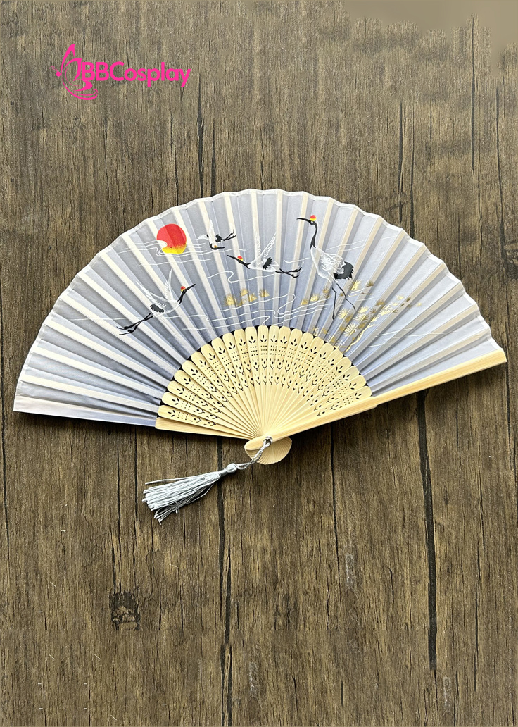 Uchiwa Quạt Vải Nhật Bản Trắng Đàn Sếu