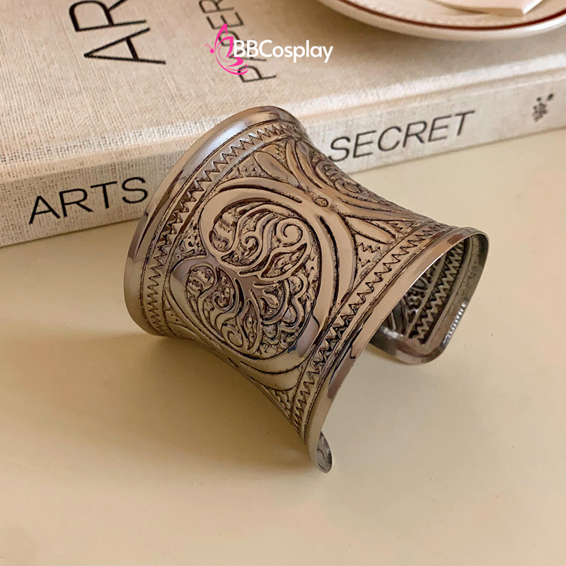 Phụ Kiện Hy Lạp - Ai Cập - Vòng Tay Bản Lớn Ống Đồng Hoa Văn Cây Cổ Thụ - Màu Bạc