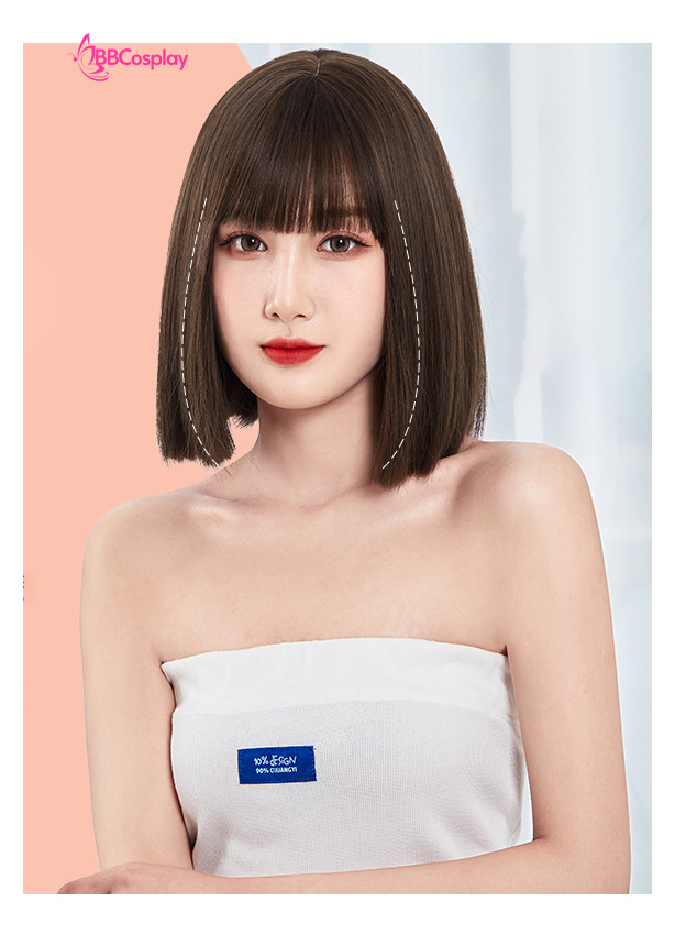 Tóc Giả Nâu Socola Mái Ngang Dài Ngang Vai