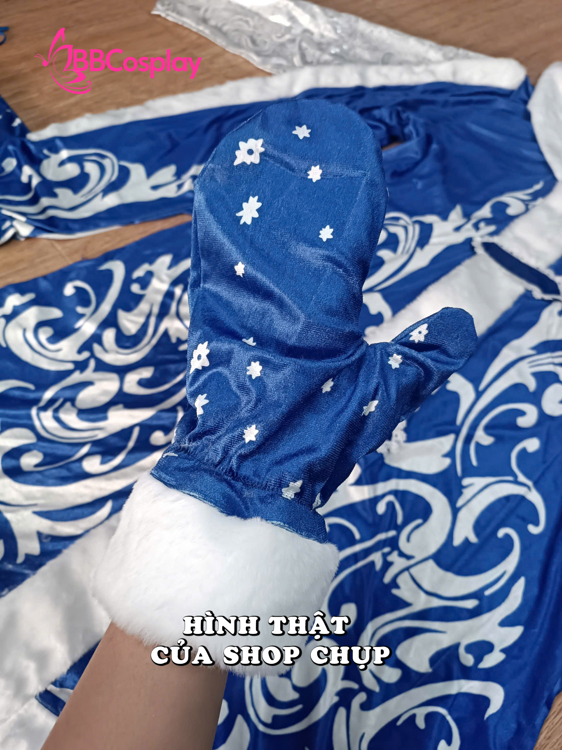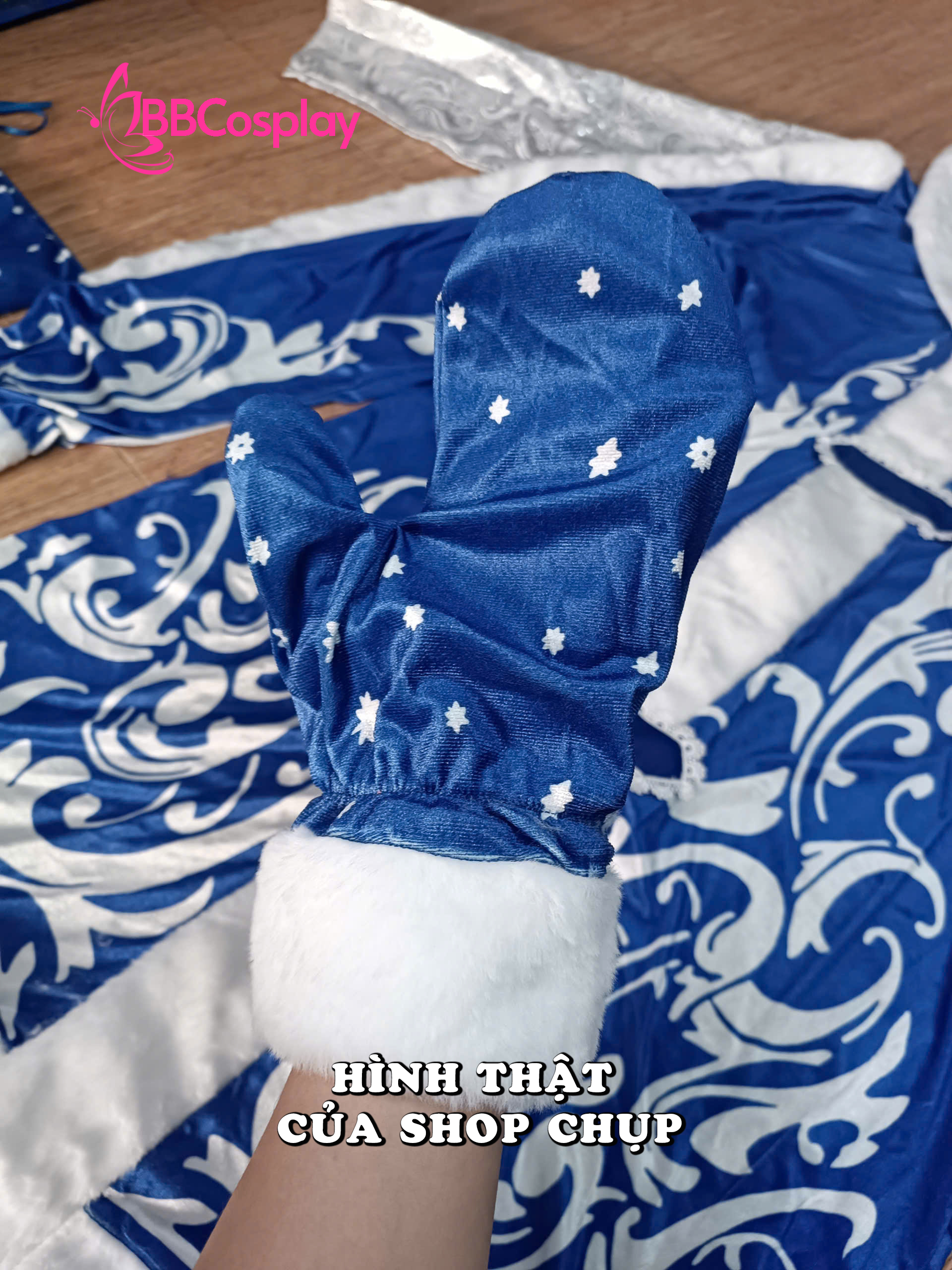 - Găng Tay: Màu xanh lam đồng bộ kết hợp với viền lông trắng