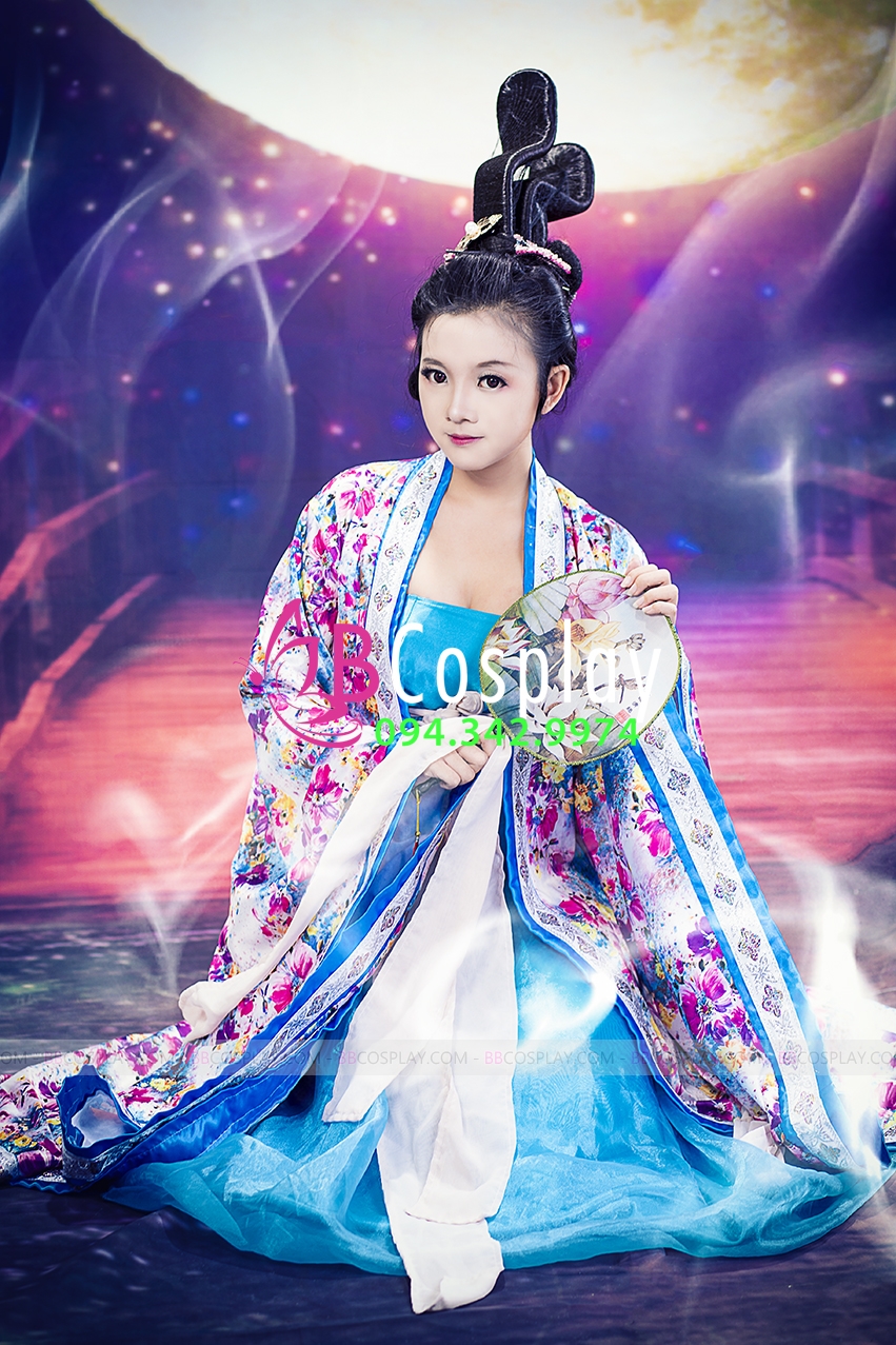 váy cúp ngực dài + áo choàng hoa + 2 dây voan