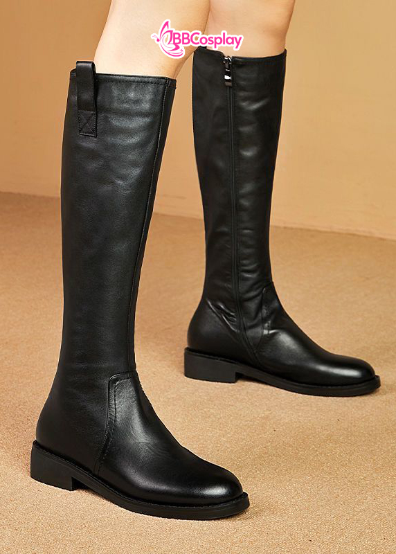 Giày Đen Da Cổ Cao Trơn Đế 3Cm - Size 39
