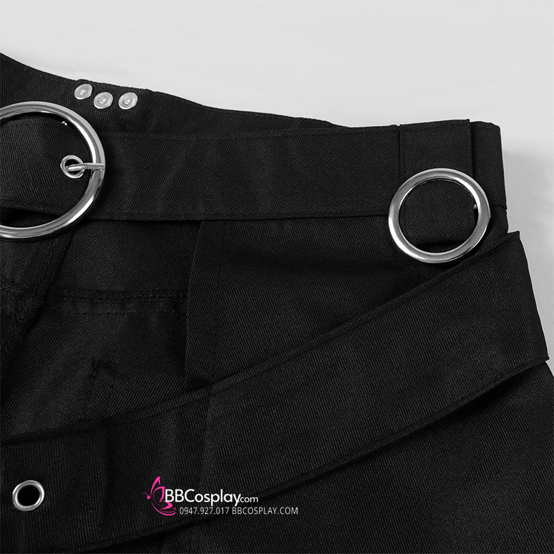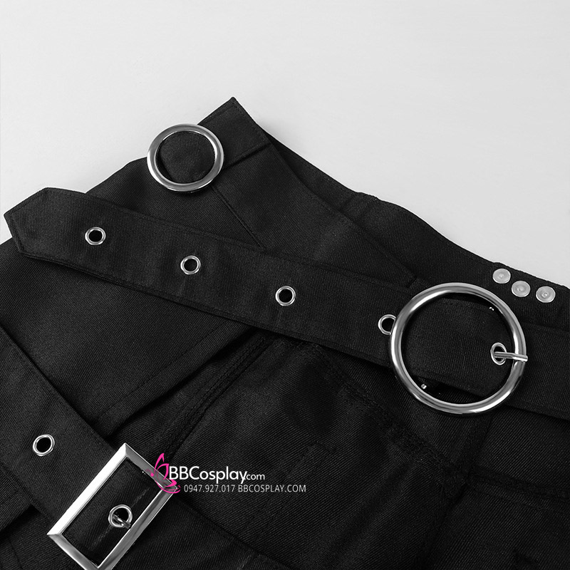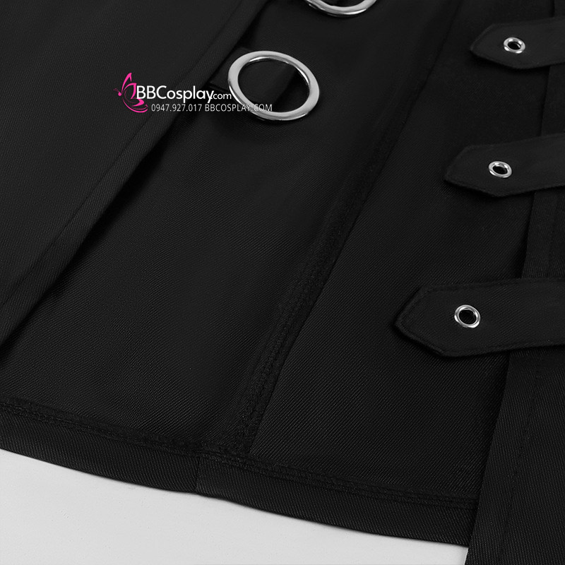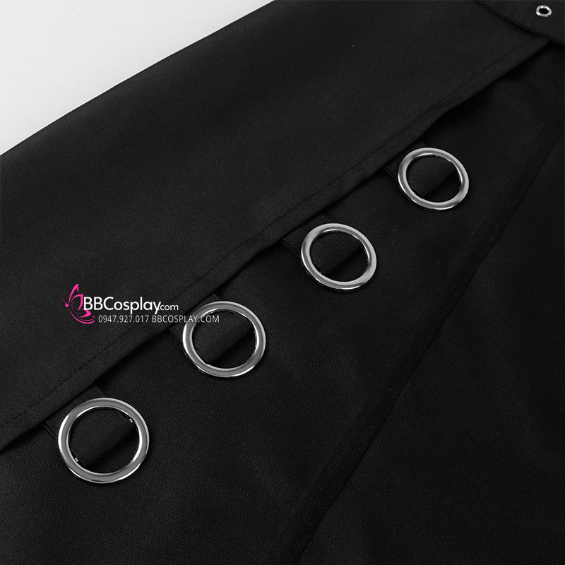 Trang Phục Lolita Đen Trắng Thêu Hoạ Tiết Chân Mèo Kèm Chuông Cổ
