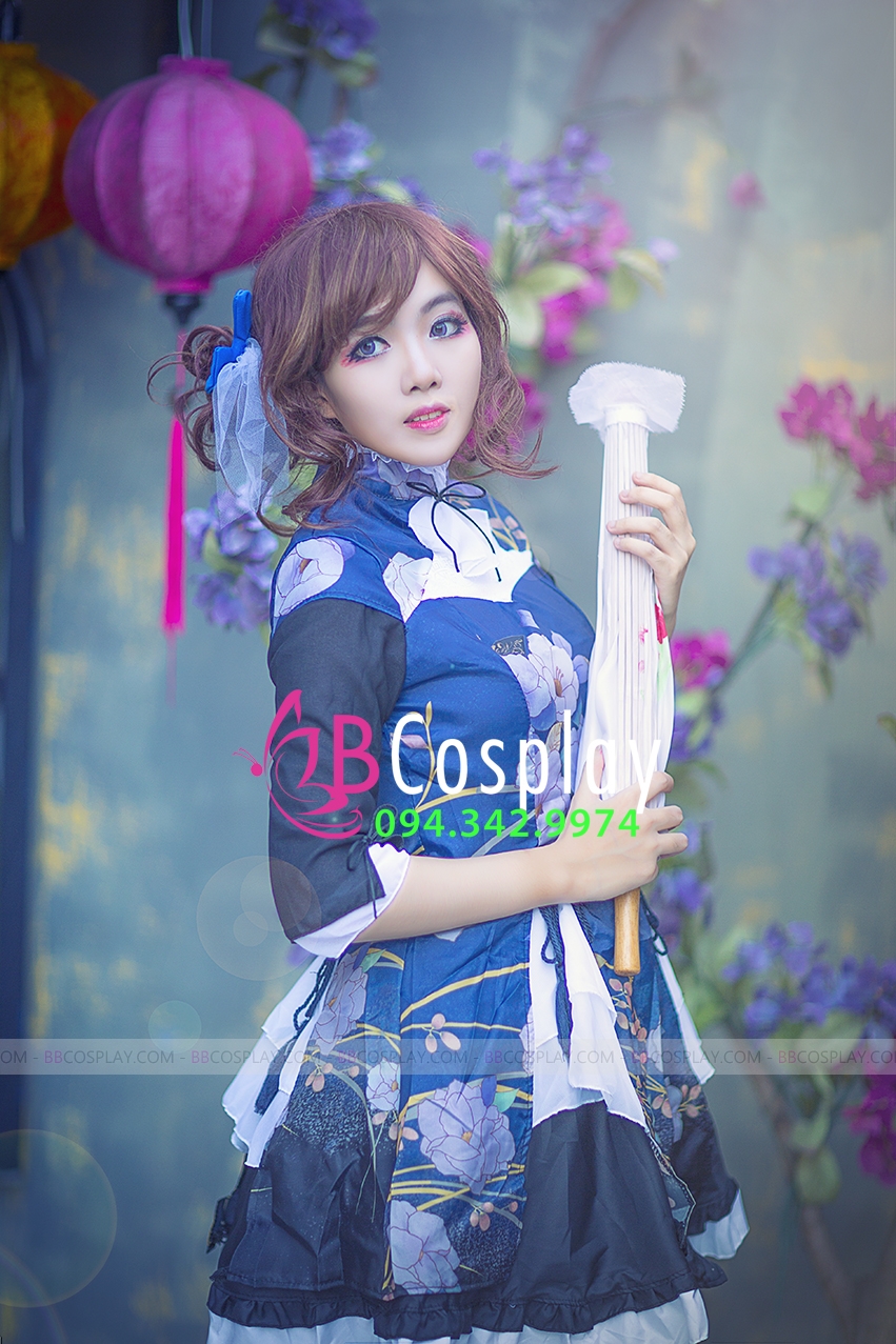 Đồ Nàng Hầu Maid Xanh Dương Tạp Dề Trắng Kèm Nhiều Nơ