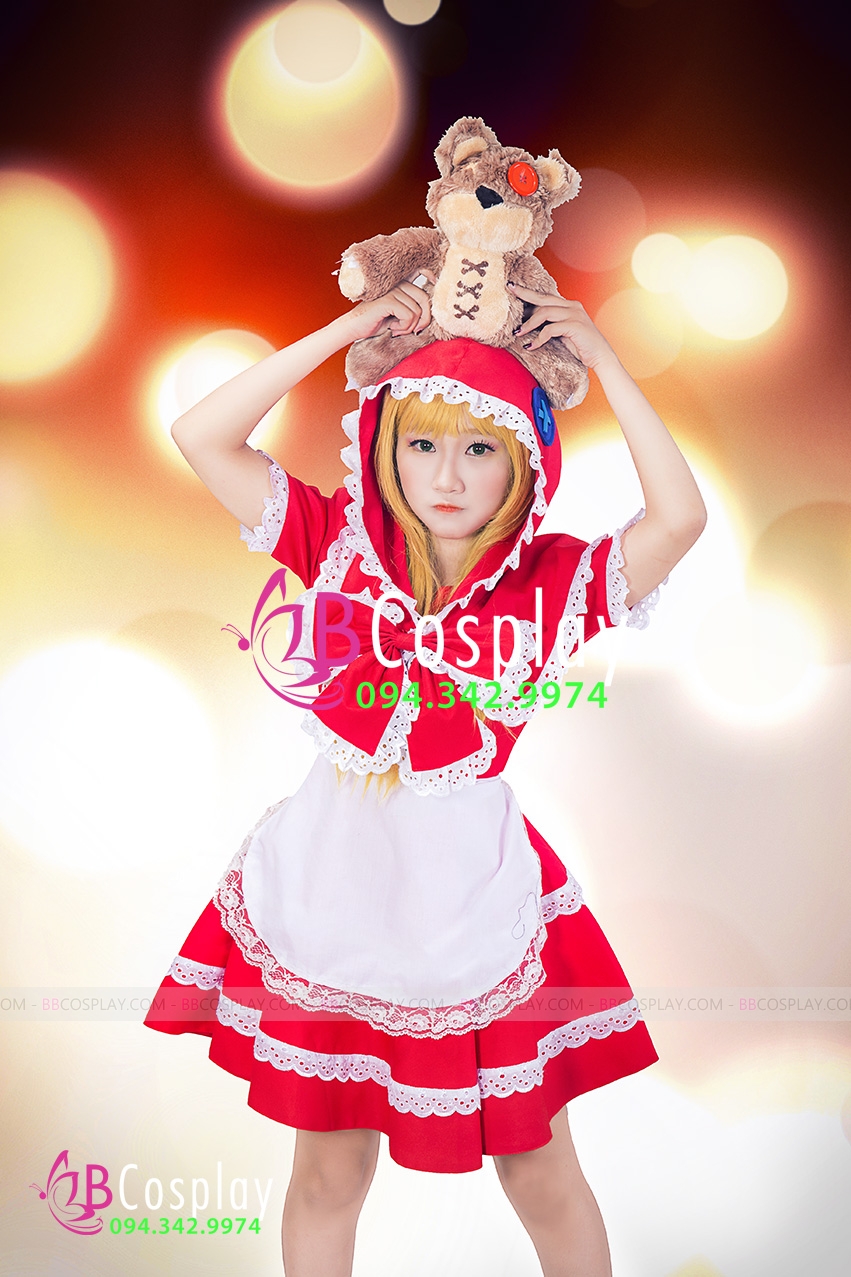 Thành phần: đầm + tạp dề + áo choàng + tóc giả + giày + gấu