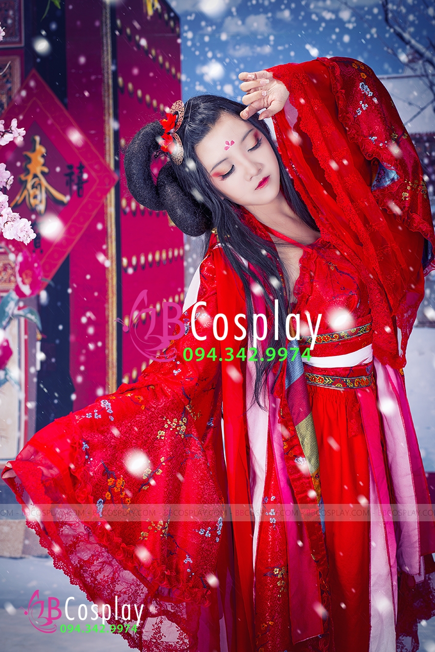 Trang Phục Nàng Hầu Cổ Lá Sen Kèm Tạp Dề Caro - Màu Đỏ
