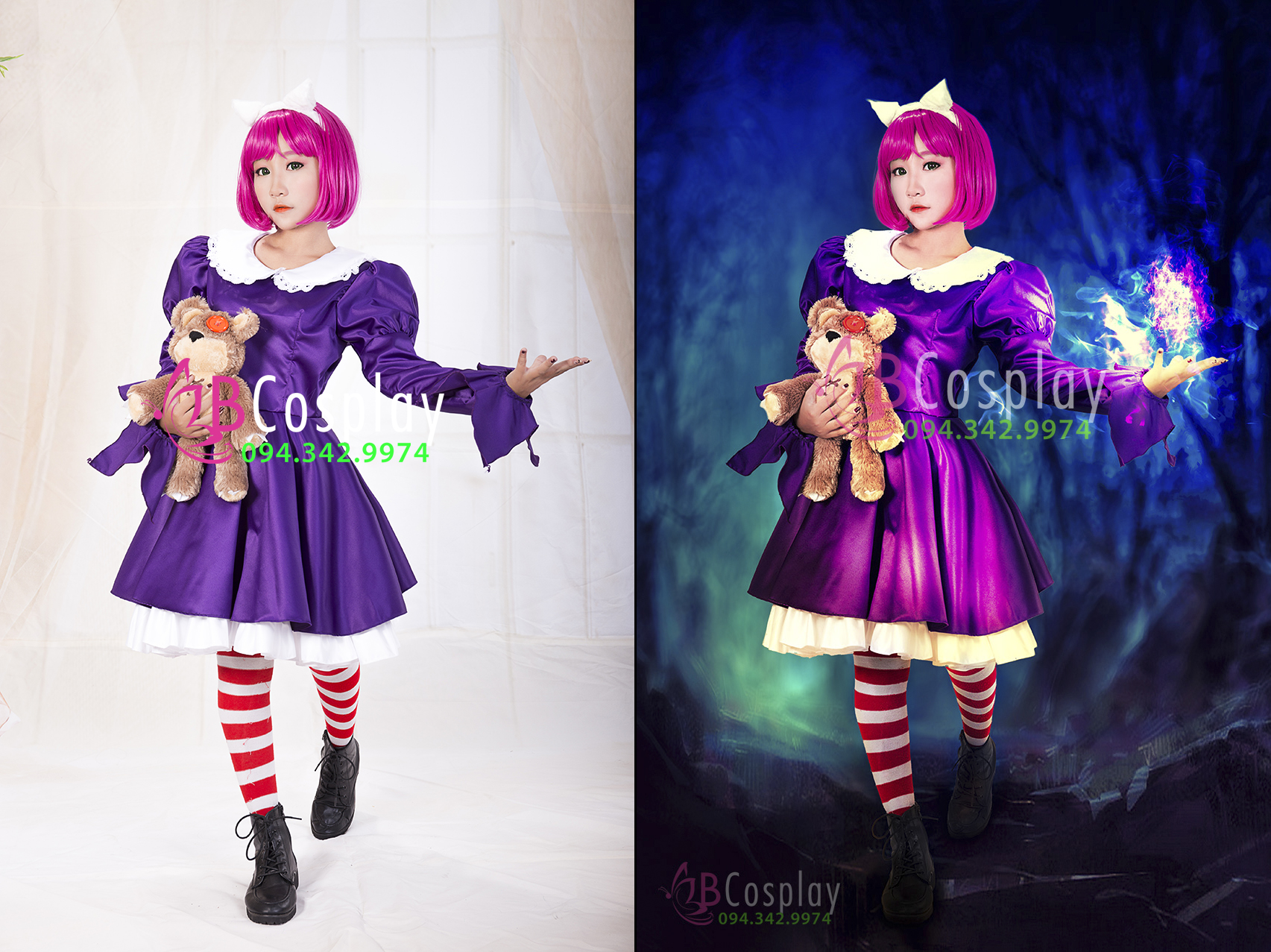 Đồ Nàng Hầu Maid Hồng Tạp Dề Trắng Kèm Nhiều Nơ