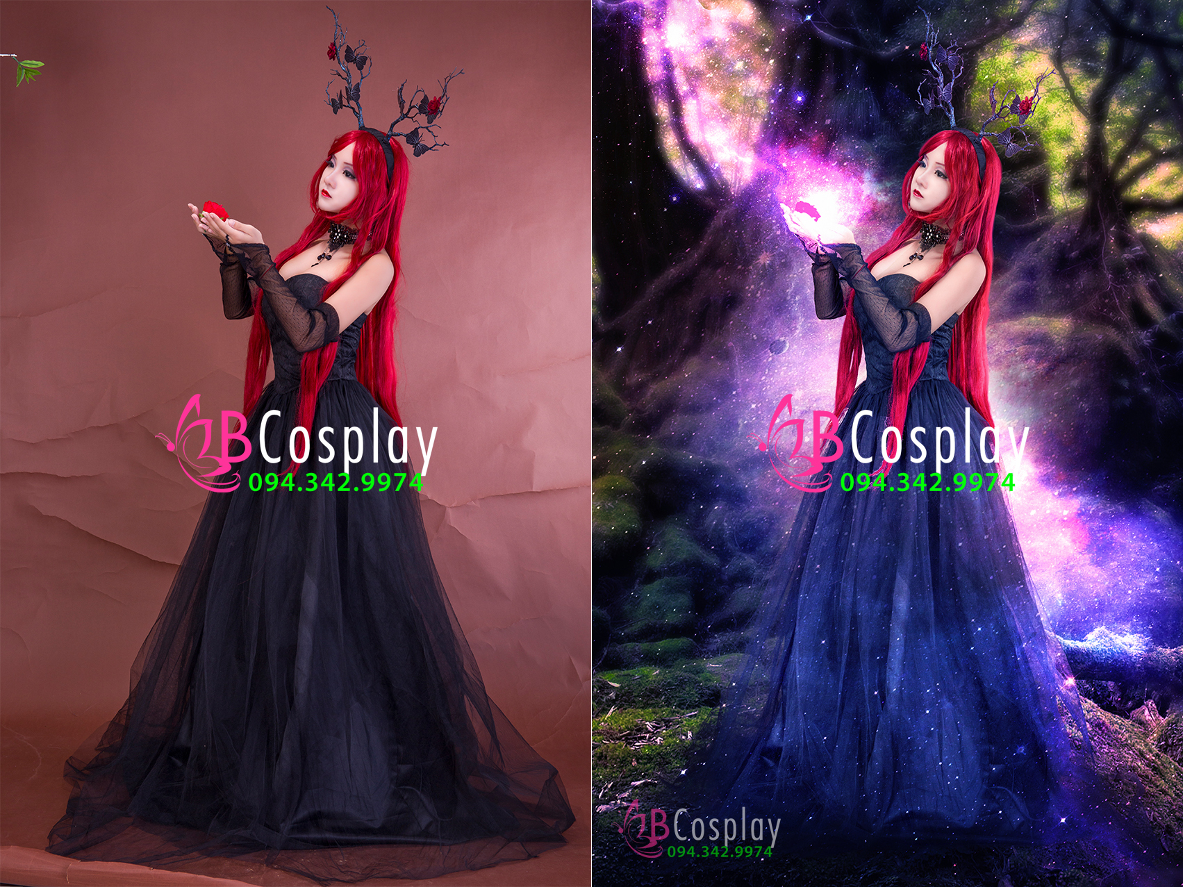 đầm dài + sừng + vòng cổ