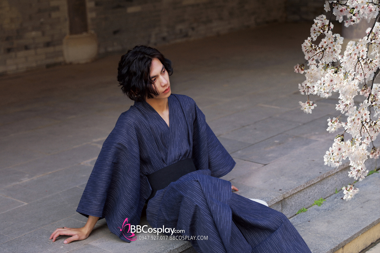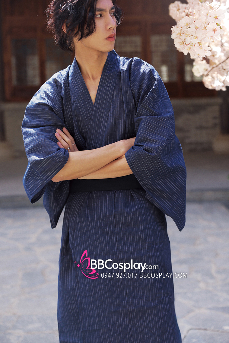 Nagagi Trắng Caro Màu Be - Yukata Nam Trắng Caro Màu Be
