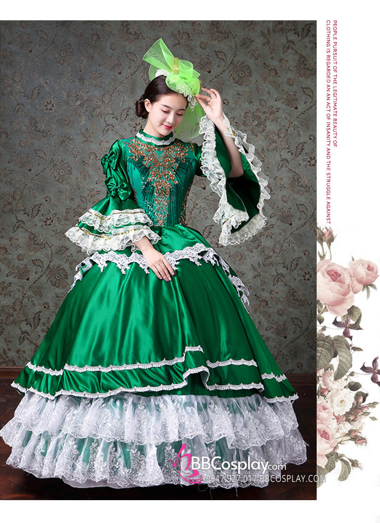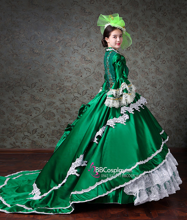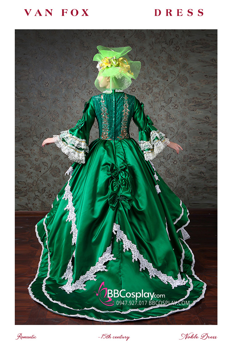 Đầm Châu Âu Xanh Lá Vintage 15Th Century