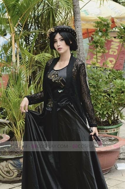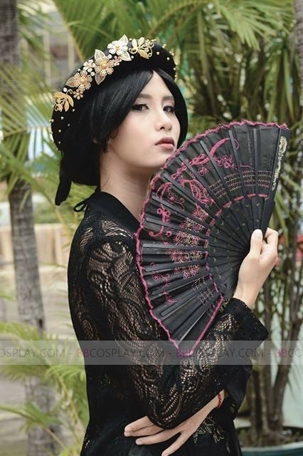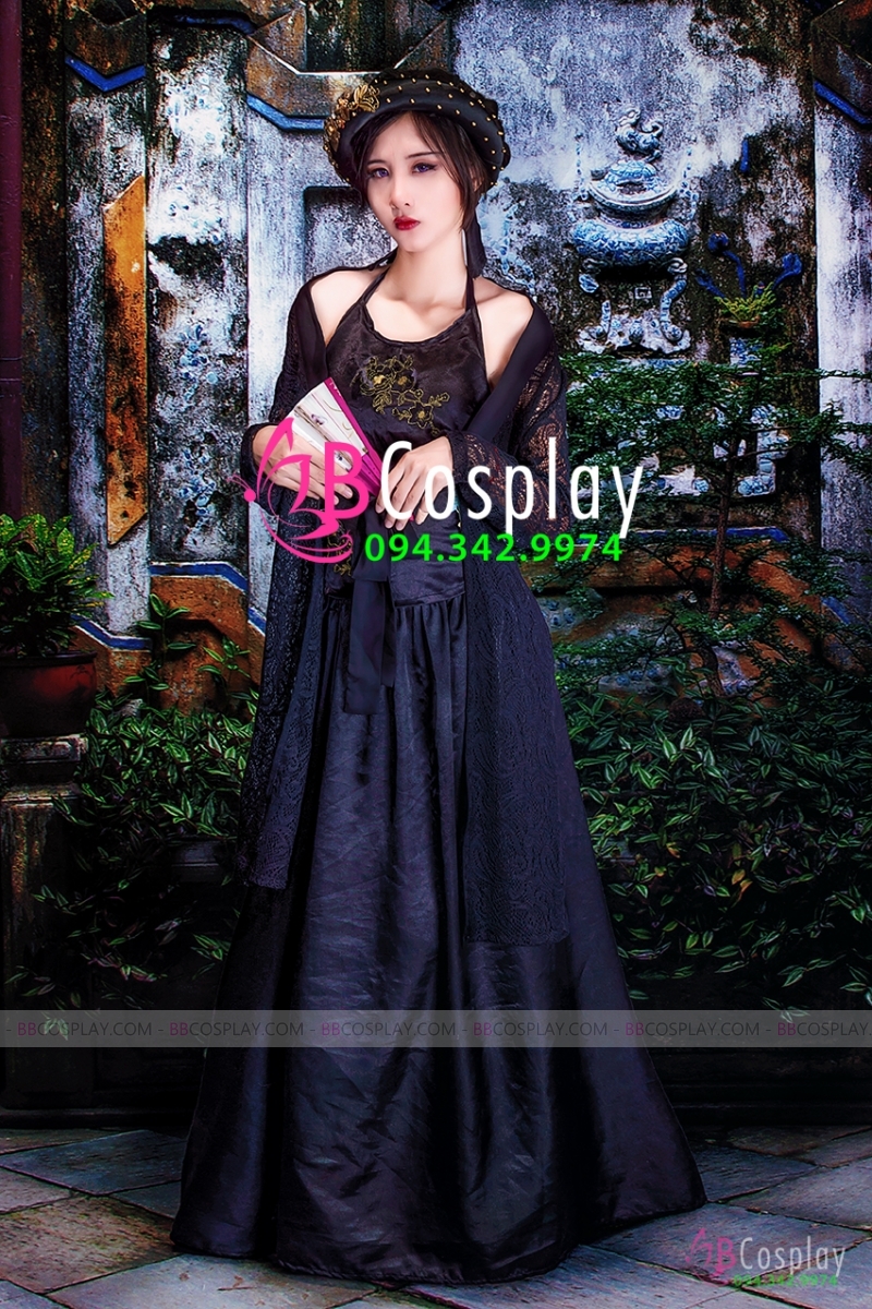 Trang Phục Nàng Hầu Nhật Đen Tạp Dề Trắng Cổ Áo Lá Sen