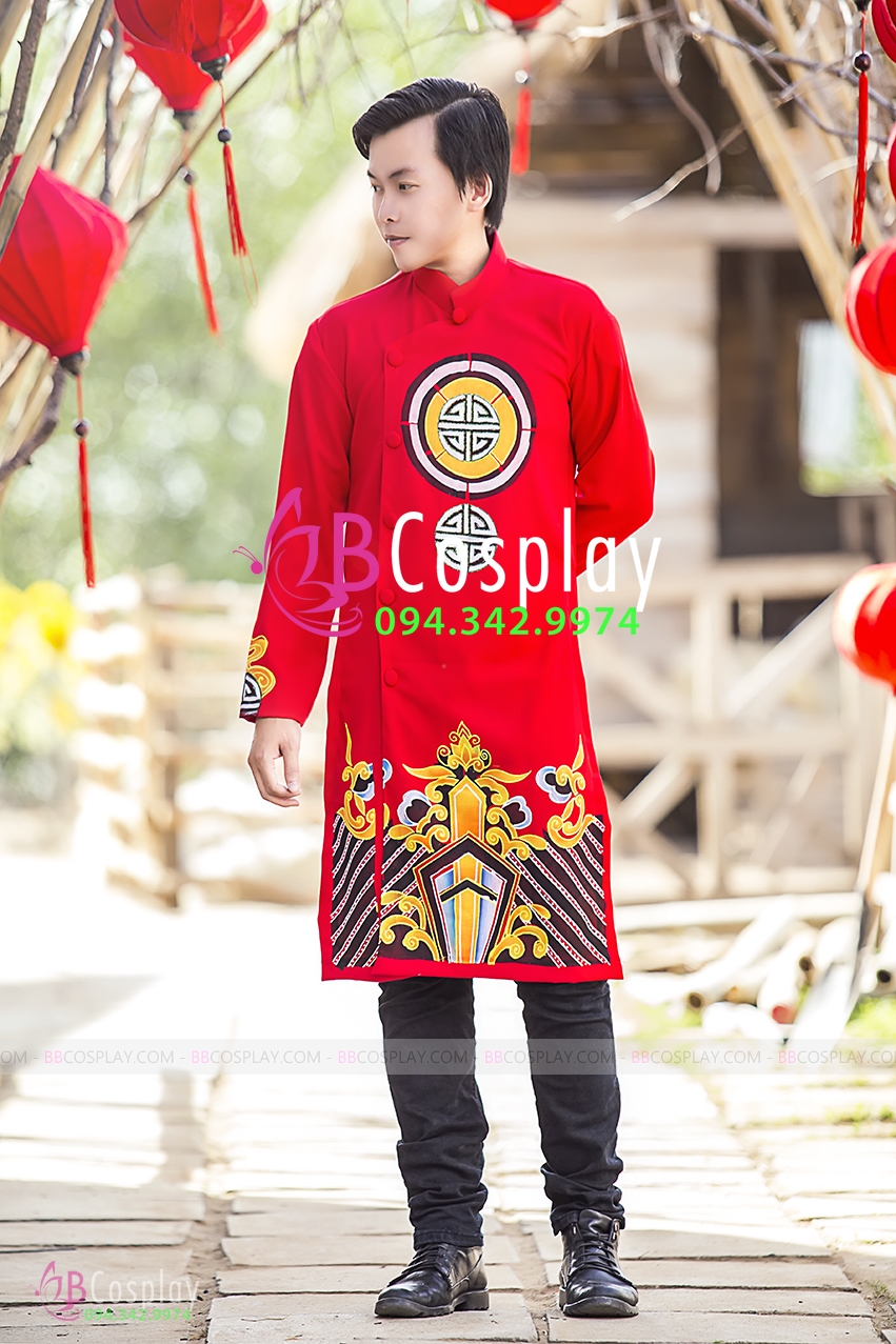 Áo Dài Nam Đỏ Vẽ Tay Cho Chú Rể
