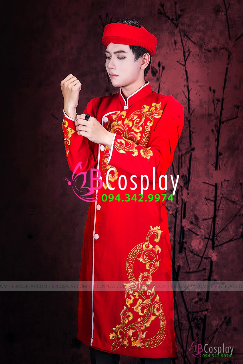 Áo Dài Nam Đỏ Hoa Văn Vẽ Tay Cho Tết