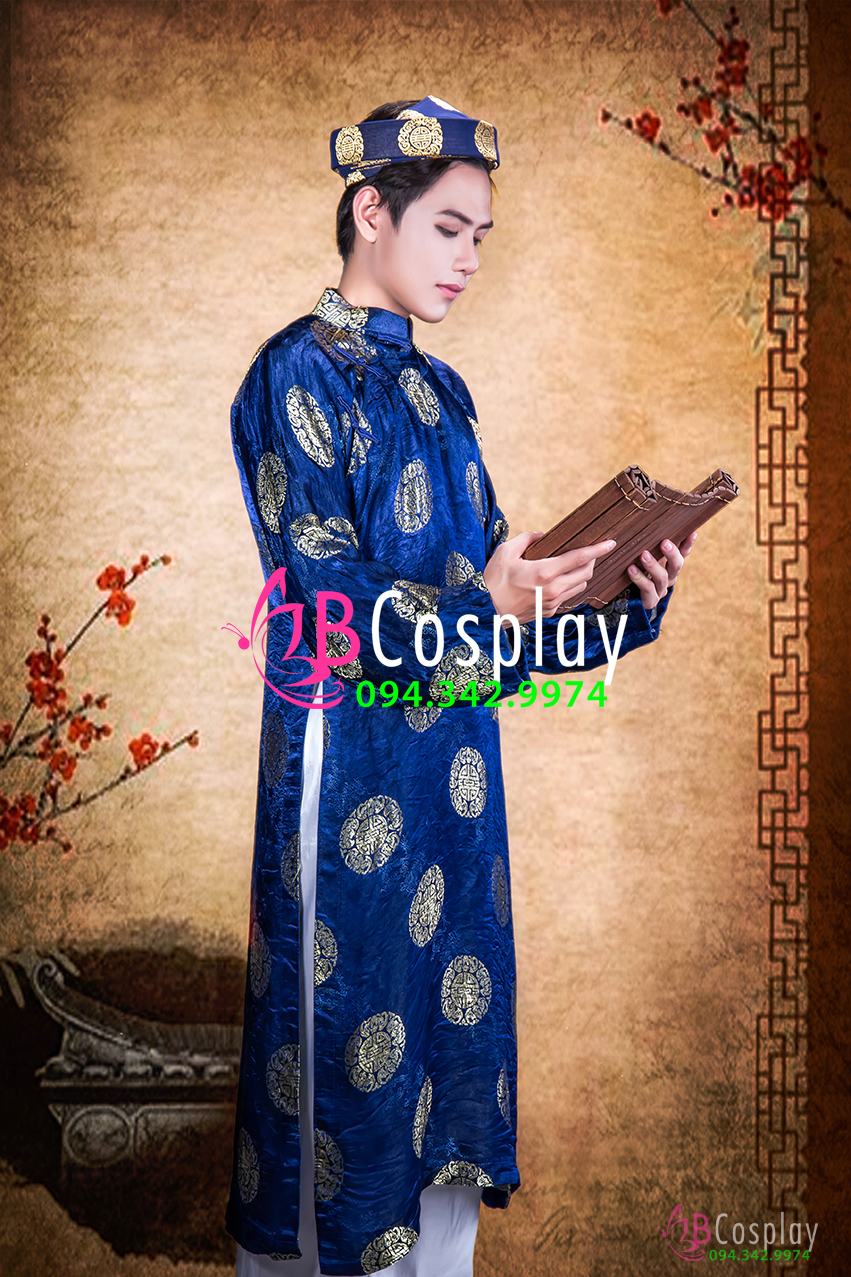 áo dài gấm trắng bên trong + áo the (voan kính) đen + khăn đóng + quần phi trắng