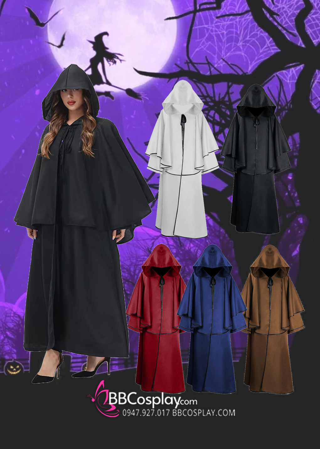 Áo Pháp Sư Phù Thủy Trắng Viền Đen Có Nón
