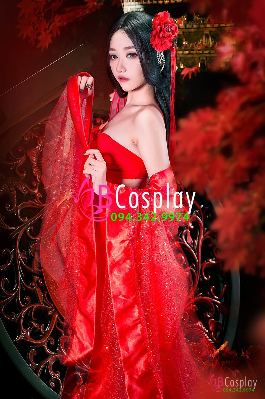 Chất liệu: vải voan nhung, phi lụa, voan ren