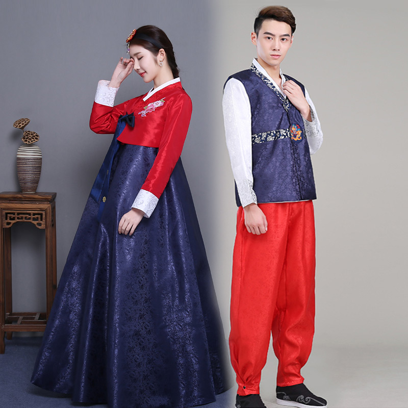 Cặp Hanbok Nam Nữ Tone Màu Đỏ Xanh Chụp Cưới