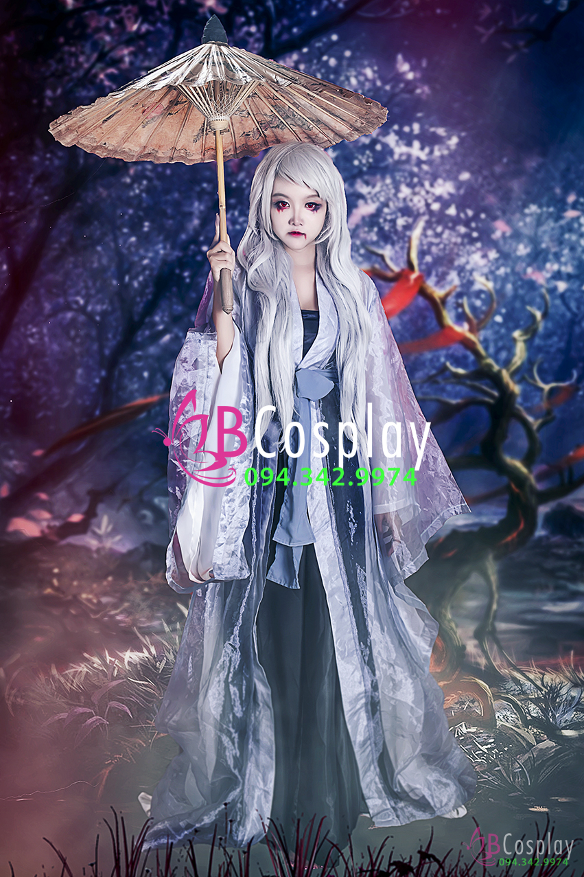 Trang Phục Nàng Hầu Nhật Đen Tạp Dề Trắng Cổ Áo Lá Sen