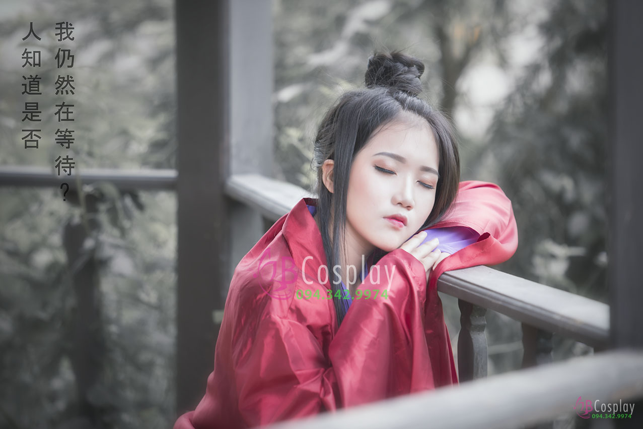 Trang Phục Nàng Hầu Cổ Lá Sen Kèm Tạp Dề Caro - Màu Đỏ