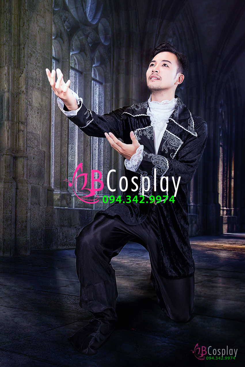 Trang Phục Nàng Hầu Nhật Đen Tạp Dề Trắng Cổ Áo Lá Sen