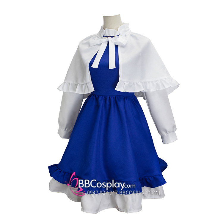 Đồ Nàng Hầu Maid Xanh Dương Tạp Dề Trắng Kèm Nhiều Nơ