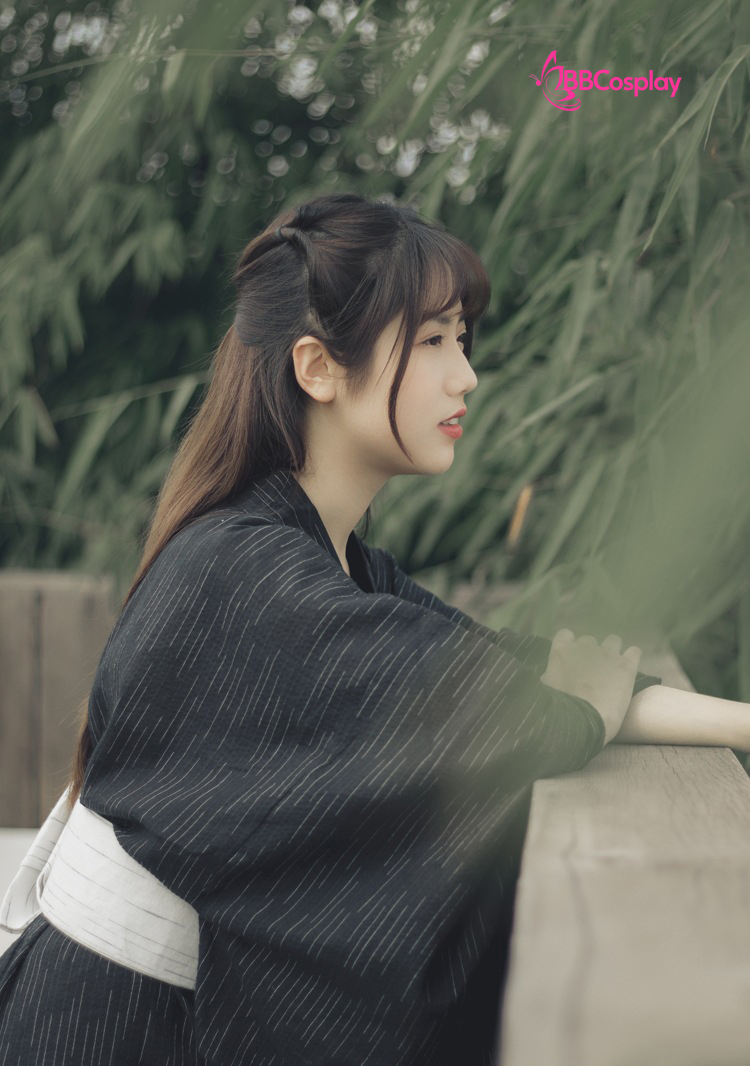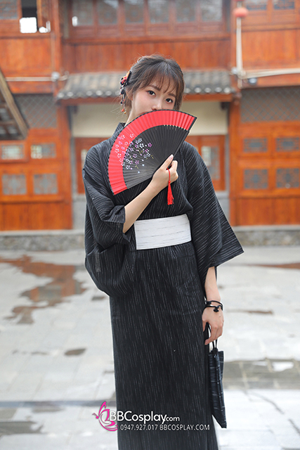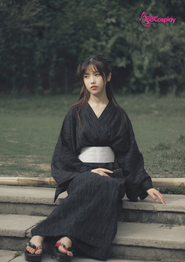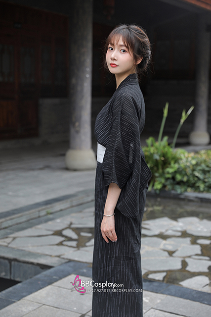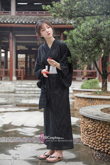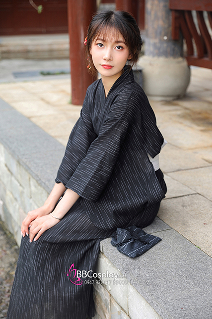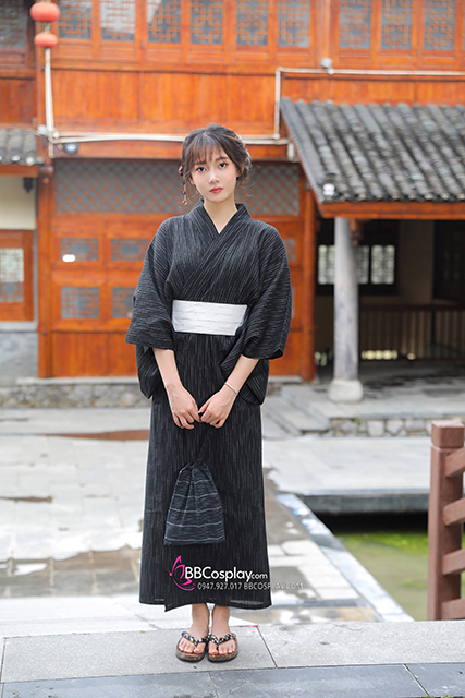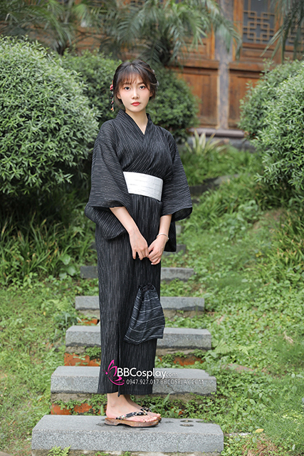 Nagagi Nam - Yukata Nữ Nền Đen Obi Trắng