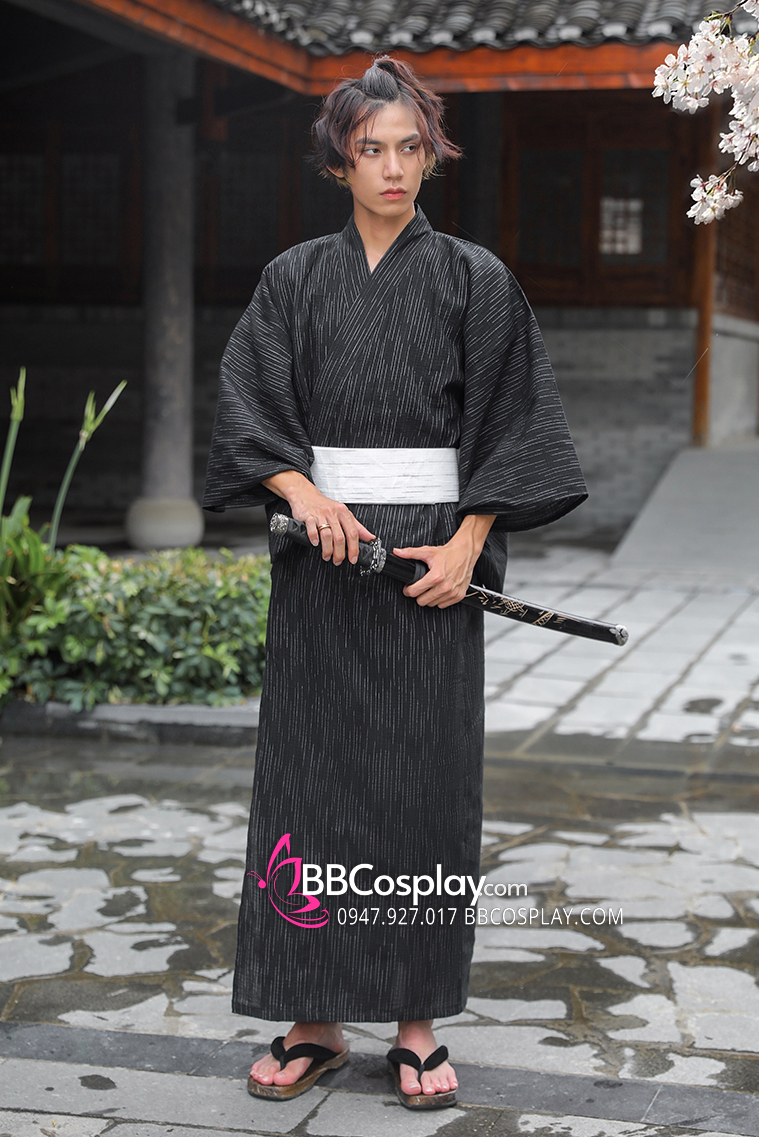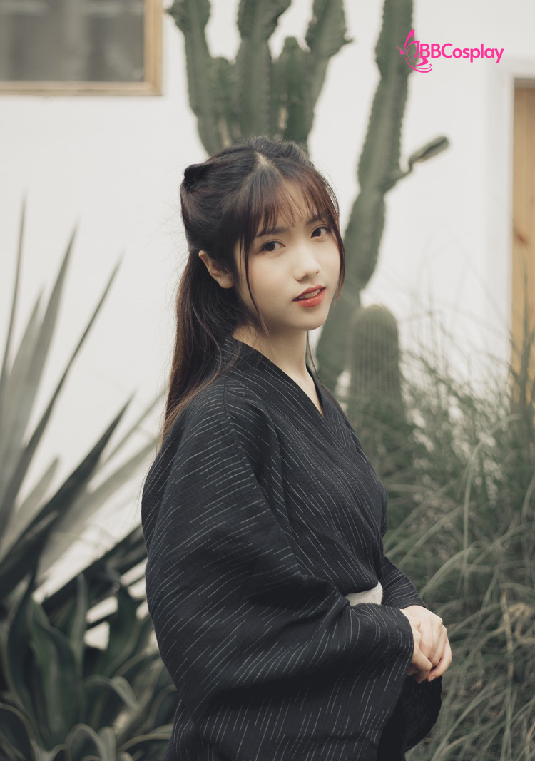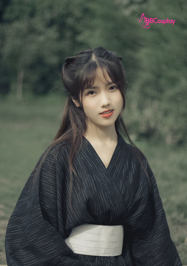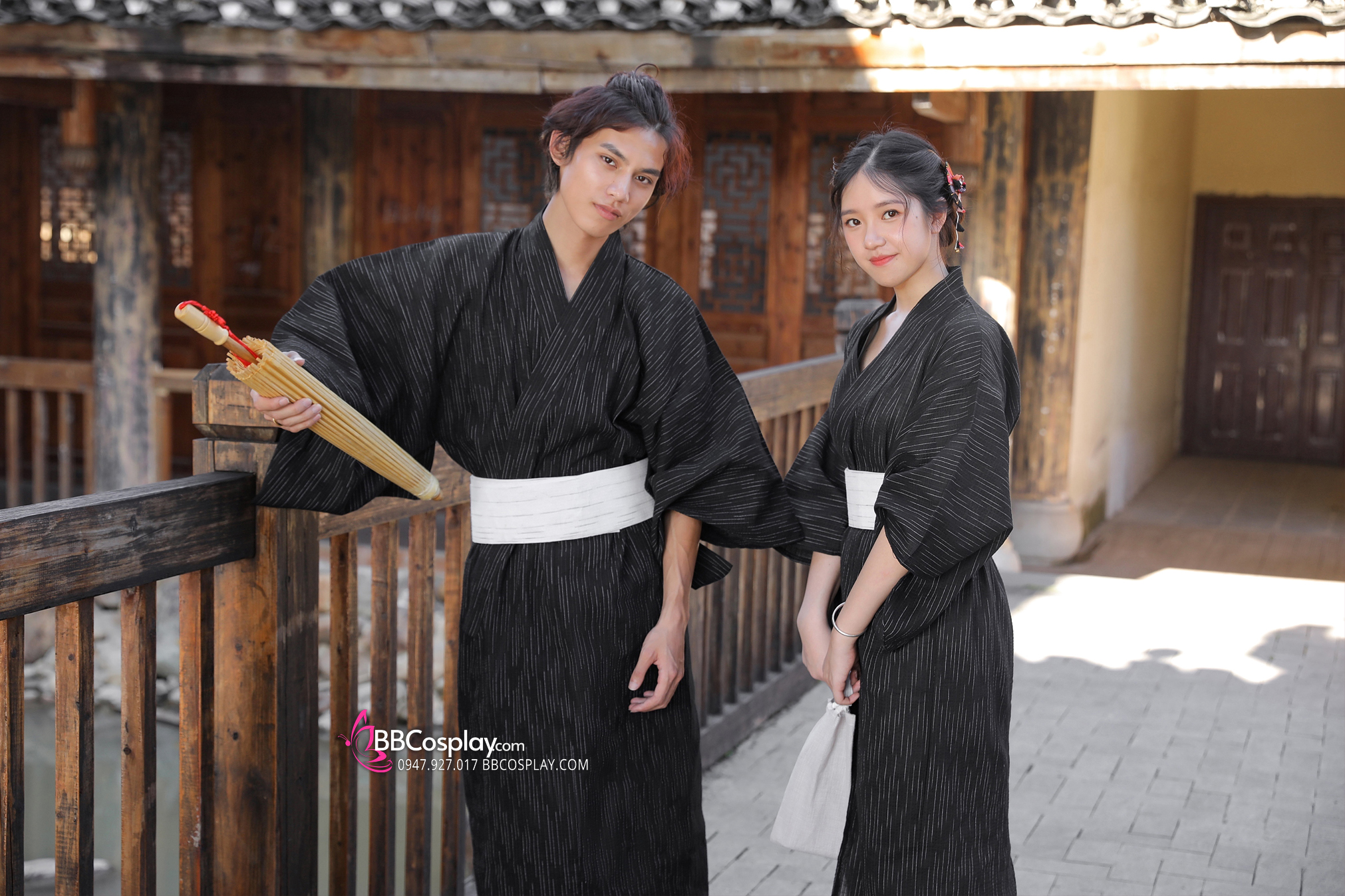Nagagi Nam - Yukata Nữ Nền Đen Obi Trắng