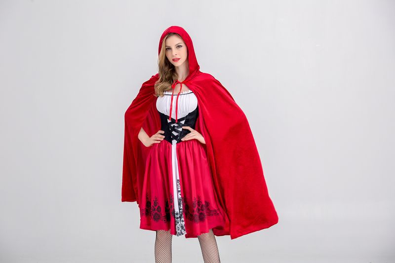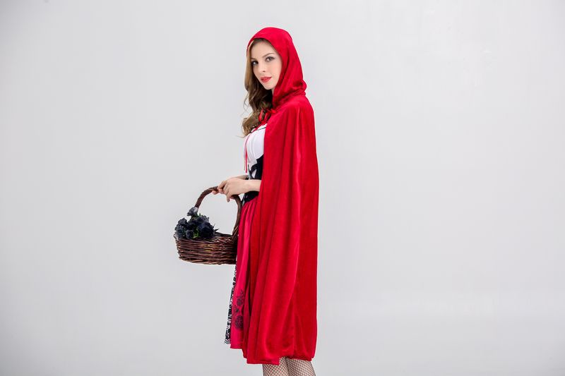 Lấy cảm hứng từ nguyên tác truyện, Trang Phục Cô Bé Quàng Khăn Đỏ với tông màu chủ đạo là trắng, đen và đỏ tạo cho người mặc sự trong sáng nhưng cũng không kém phần bí ẩn. Trang phục làm từ vải kate,ren với dáng váy xòe cùng điểm nhấn ở phần eo sẽ làm tôn lên vóc dáng của bạn. Chúng tôi còn cung cấp phụ kiện theo set với đa dạng mẫu mã chắc chắn sẽ khiến bạn hài lòng.