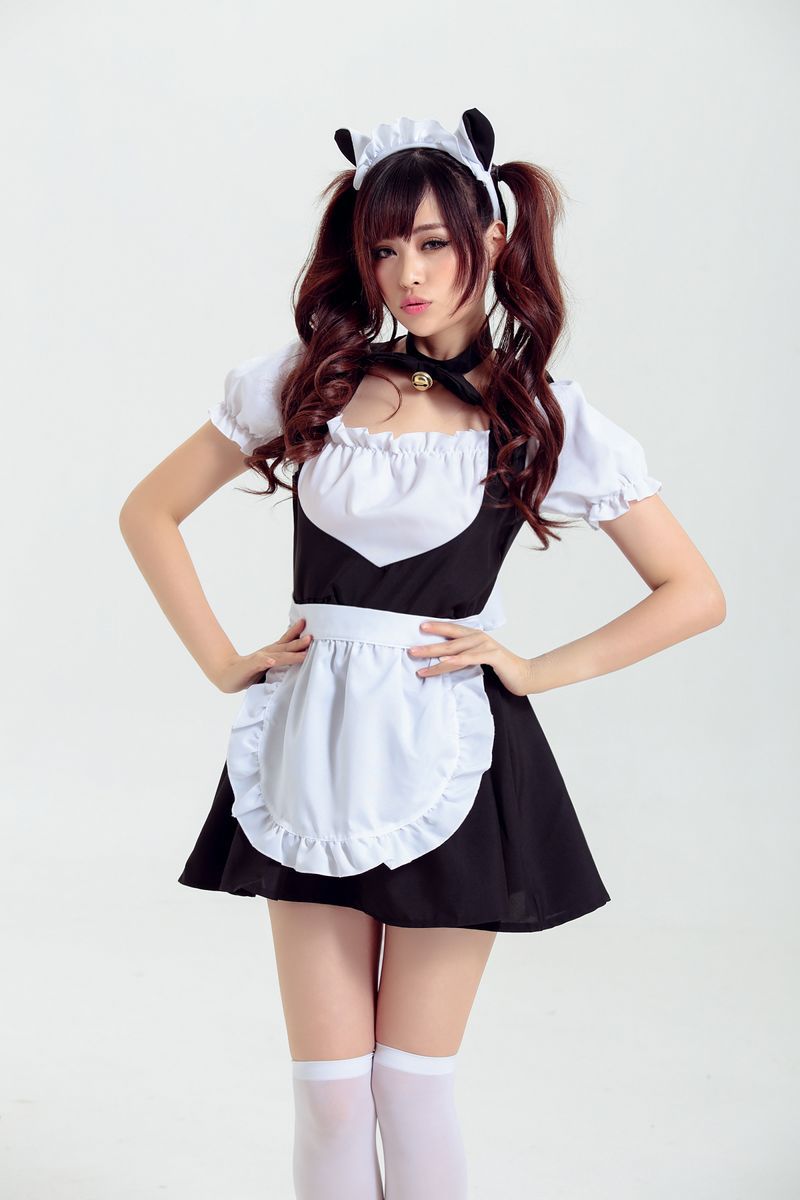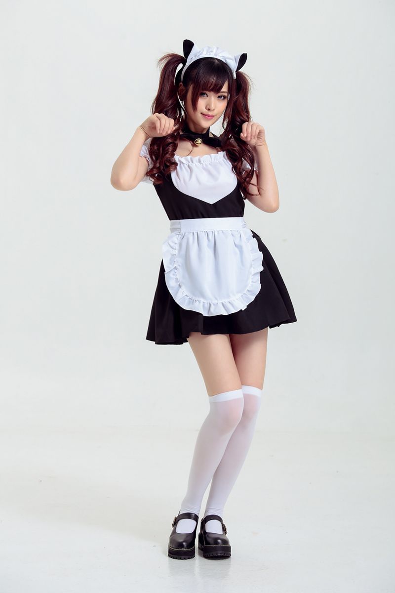 Trang Phục Nàng Hầu Nhật Đen Tạp Dề Trắng Cổ Áo Lá Sen
