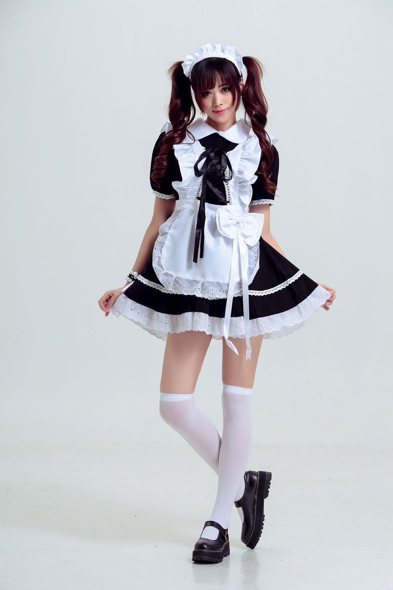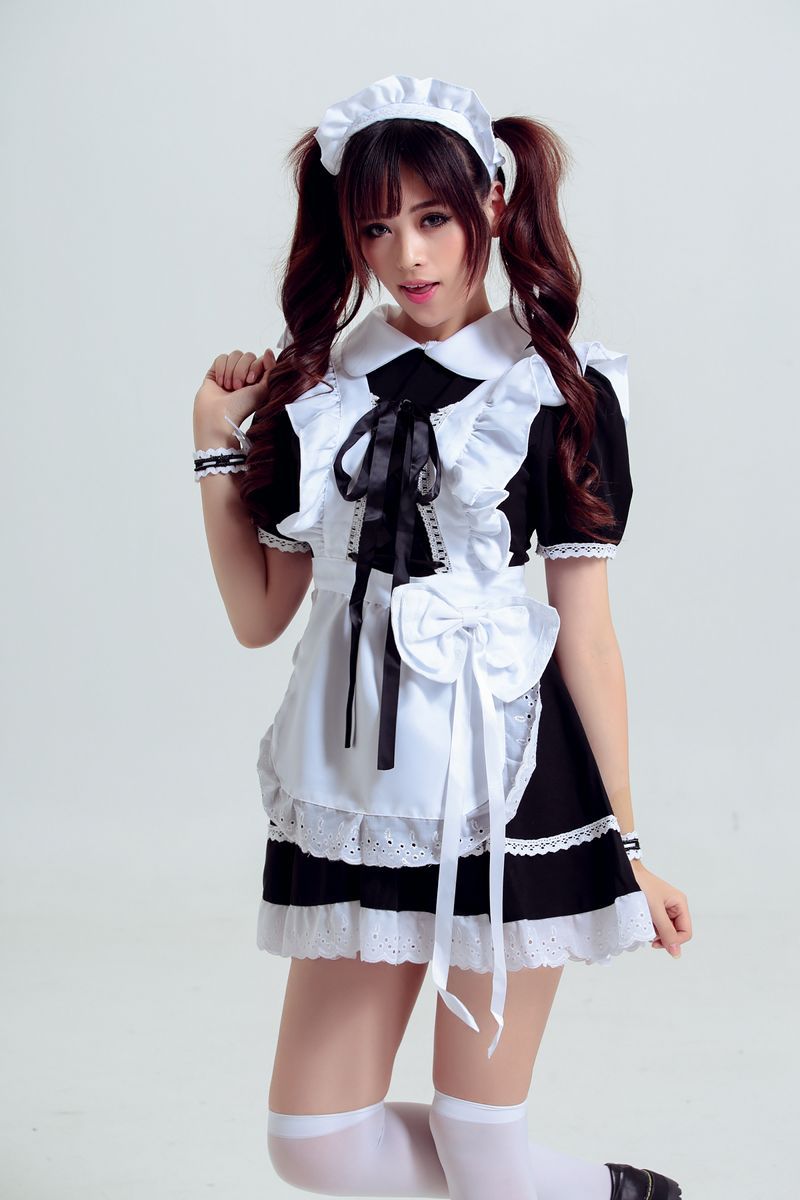 Trang Phục Nàng Hầu Nhật Đen Tạp Dề Trắng Cổ Áo Lá Sen