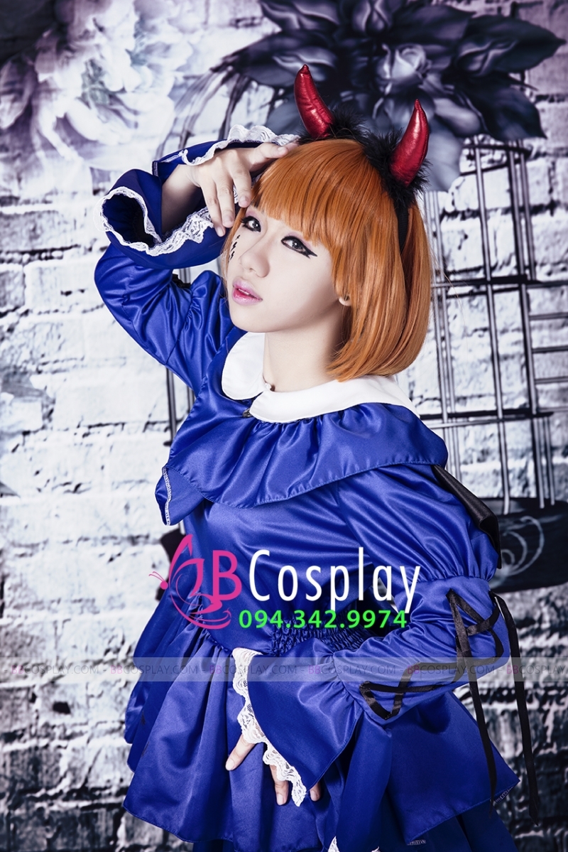Đồ Nàng Hầu Maid Xanh Dương Tạp Dề Trắng Kèm Nhiều Nơ
