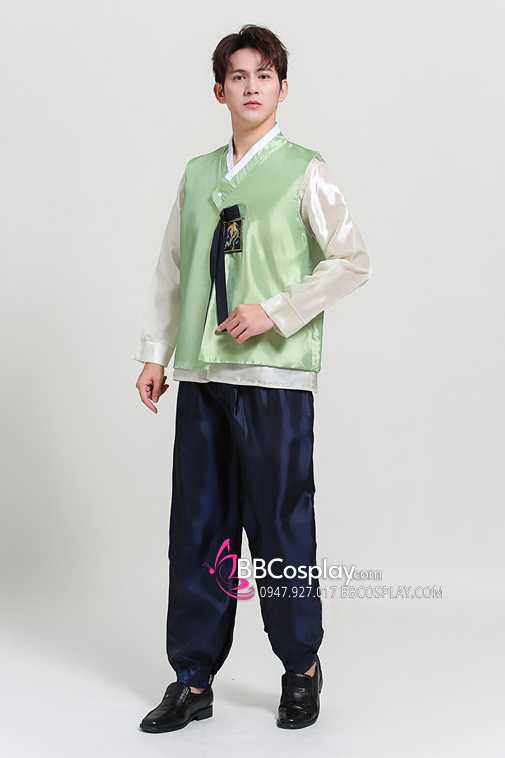 Đồ Hanbok Nam Áo Xanh Mạ Quần Xanh