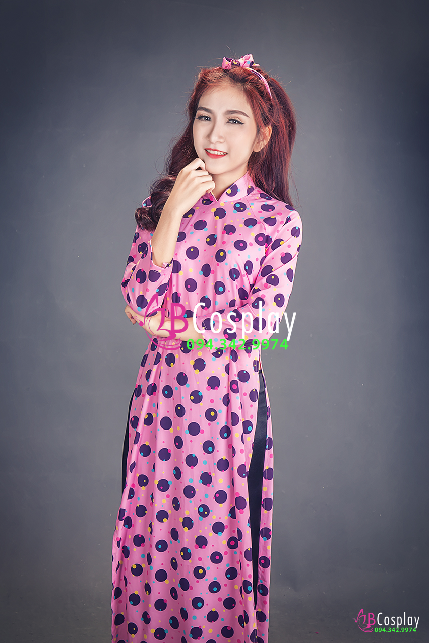Áo Dài Cô Ba Sài Gòn Hồng Chấm Bi