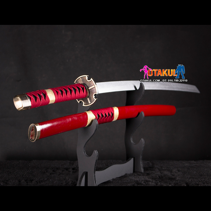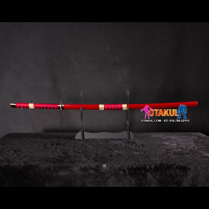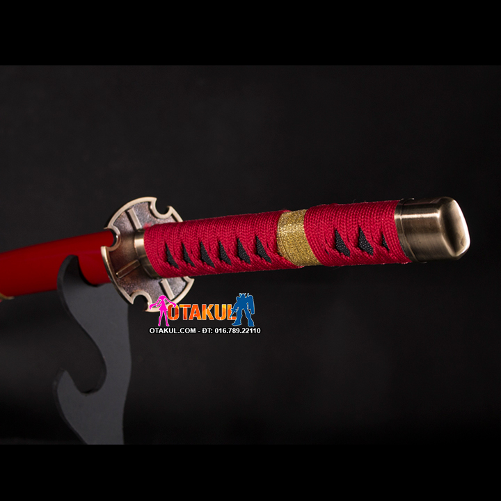 Kiếm Gỗ Sandai Kitetsu Của Zoro mang vẻ ngoài giống như một ngọn lửa màu đỏ, kiếm còn có những chi tiết nhấn nhá màu vàng khiến nó mang một vẻ ngoài cực kì quyền lực. Chất liệu của kiếm là gỗ, chiều dài 1m, nên khách hàng có thể yên tâm về độ an toàn của sản phẩm khi sử dụng.