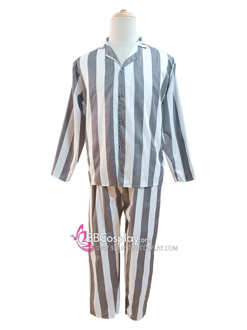 Trang Phục Tù Nhân Nam Sọc Đen Trắng Cổ Sơ Mi Sọc Đen Trắng