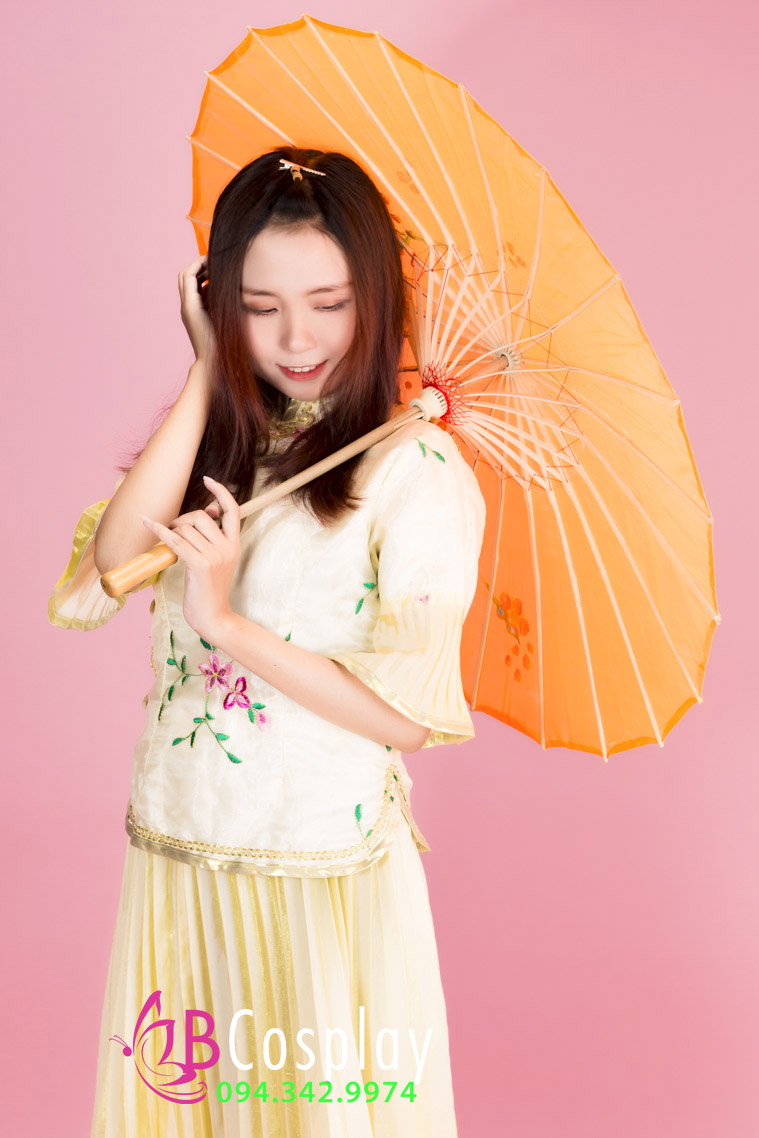 Đồ Nàng Hầu Maid Xanh Dương Tạp Dề Trắng Kèm Nhiều Nơ