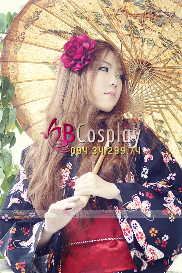 Trang Phục Nàng Hầu Nhật Đen Tạp Dề Trắng Cổ Áo Lá Sen