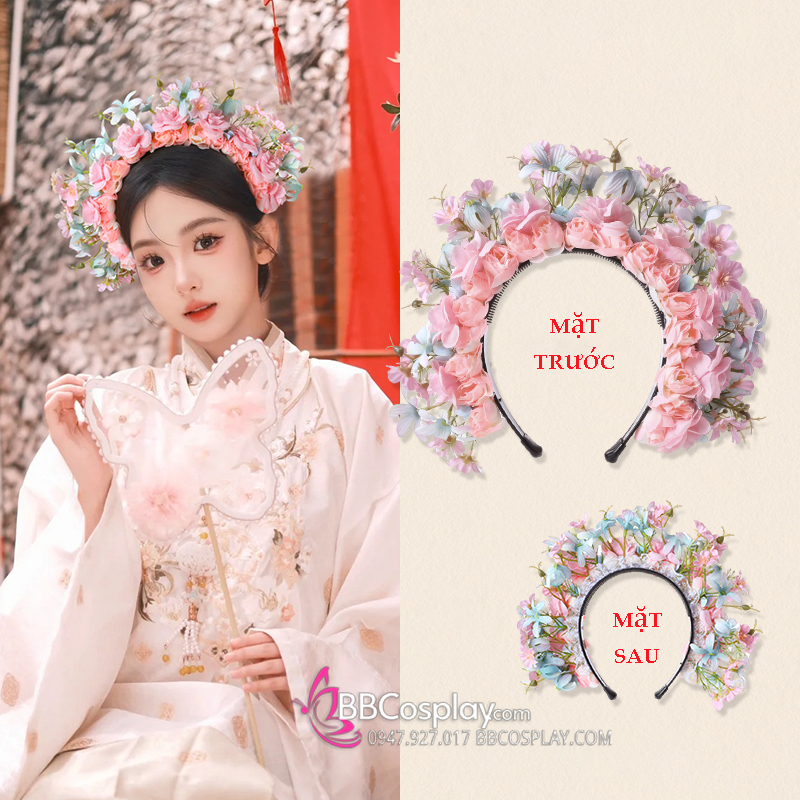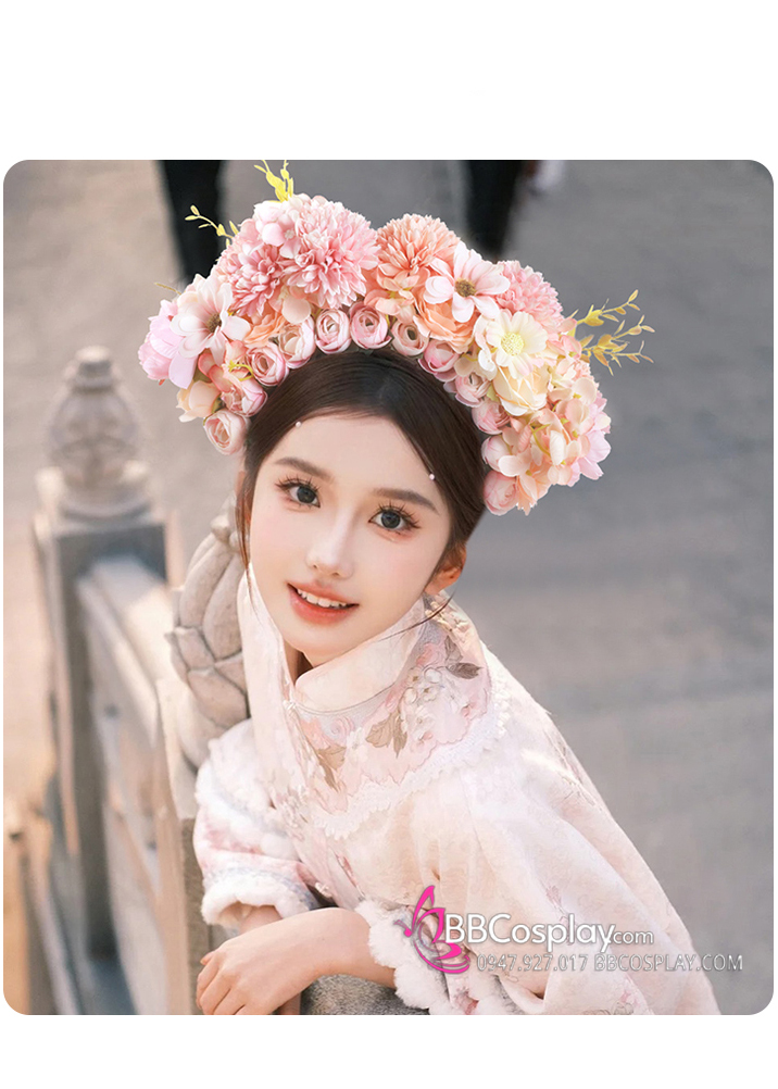 Vòng Hoa Đội Đầu Bờm Hoa Tuyền Châu - Trend Cài Hoa Lên Tóc - Màu Hồng